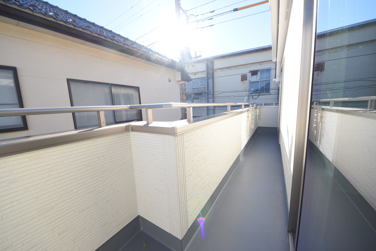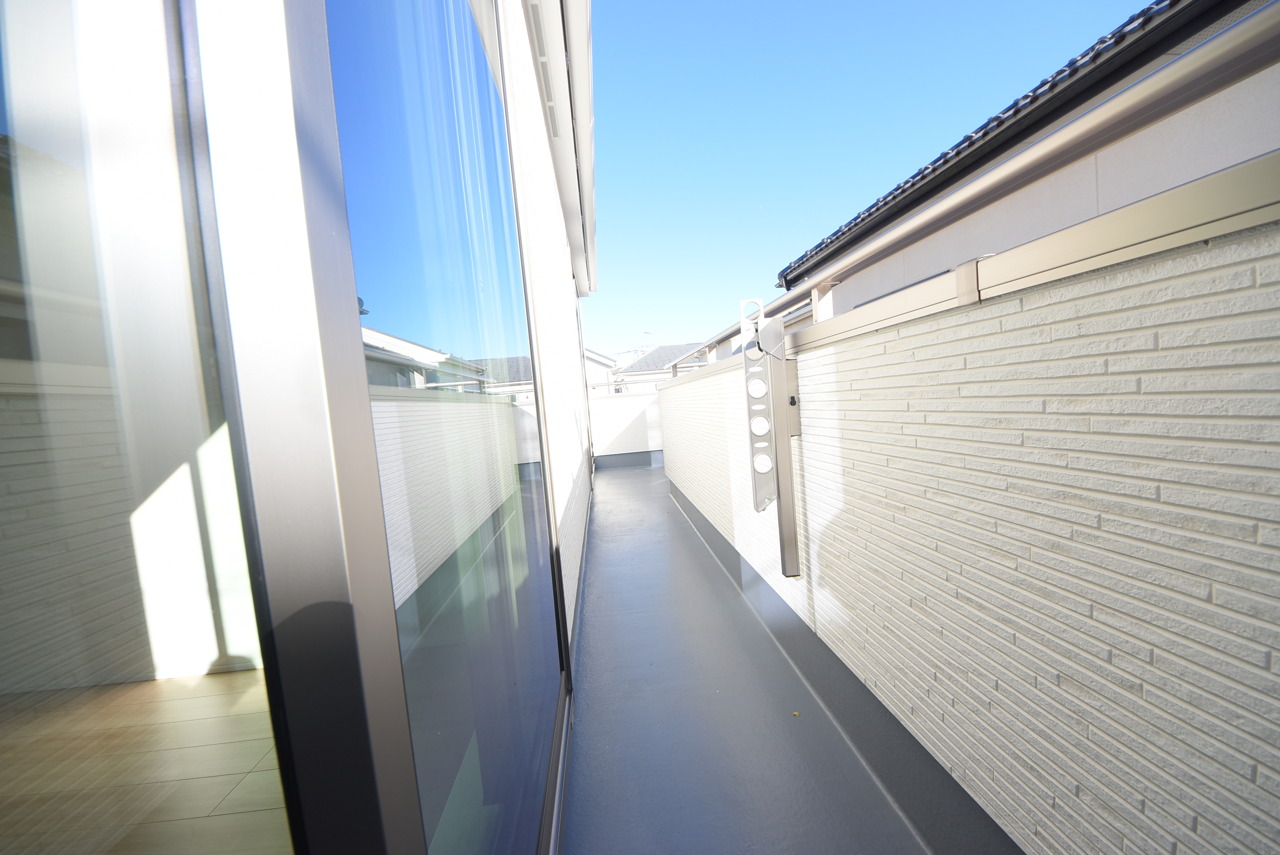 陽ざしが差込む明るいバルコニー。奥行きのあるバルコニーはお洗濯時に助かります。