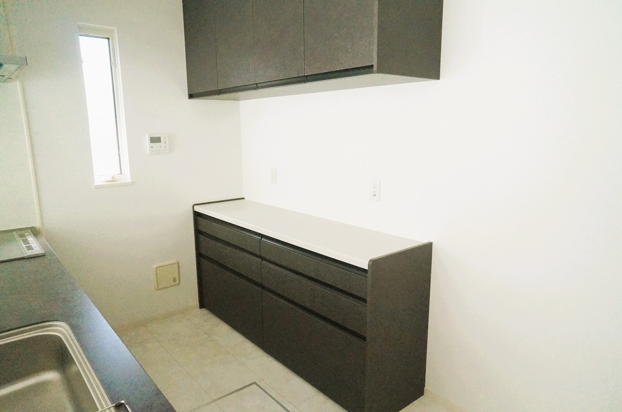 収納たっぷり。調理器具や調味料も出し入れしやすいですね。