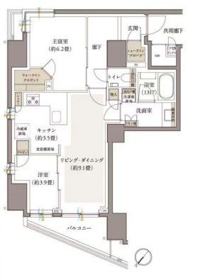 | 間取 | 2LDK (LD9.1帖、K3.5帖、洋室6.2帖、洋室3.9帖) | ||