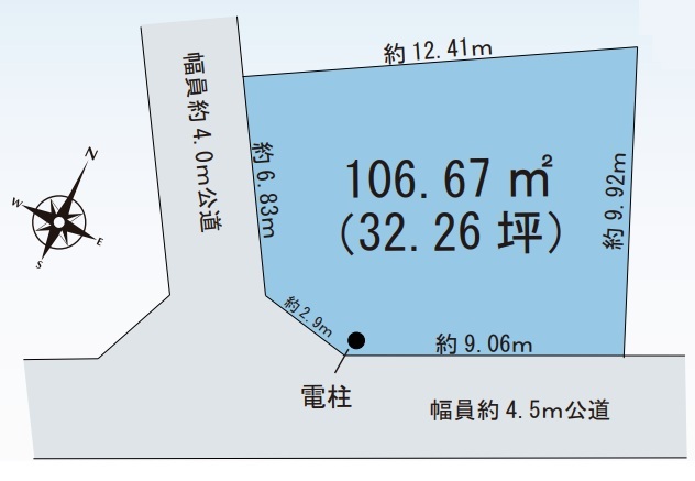 | 接道 | 南西側4M公道に6.8M接道 南東側4.5M公道に9M接道 |