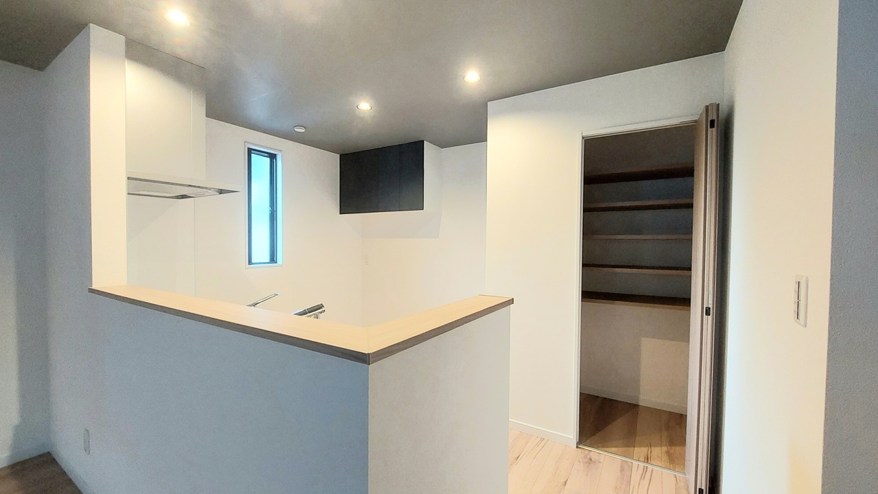 大容量のパントリーがございますので、非常食や食品のストックも沢山置けます。