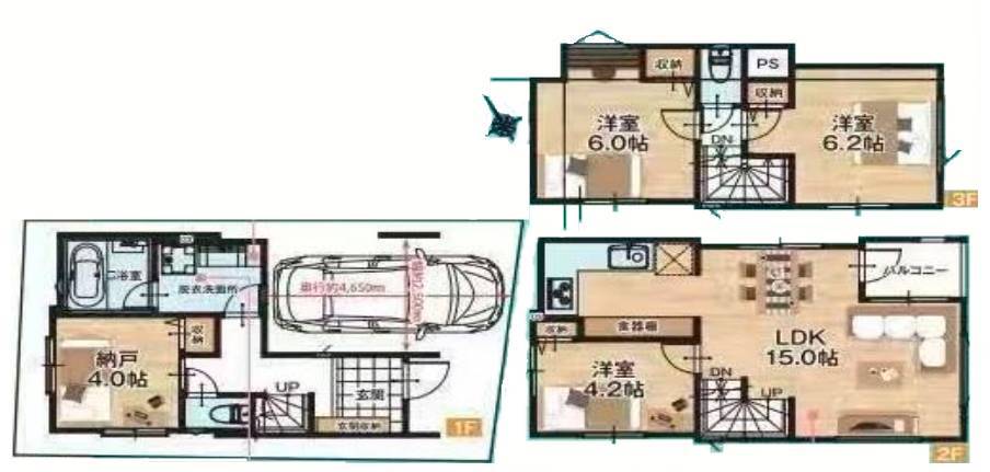 | 間取 | 3SLDK (LDK15.0帖、洋室6.2帖、洋室6.0帖、洋室4.2帖、洋室4.0帖) | ||