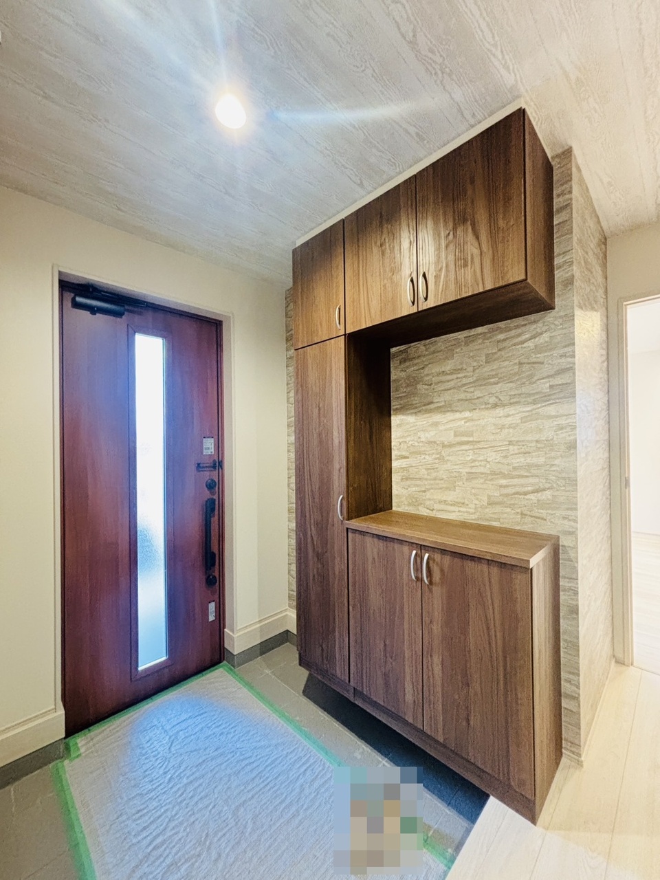 明るく開放的な玄関、靴の脱ぎ履きもしやすく、収納も豊富でご家族皆様の靴をスッキリ収納できます。