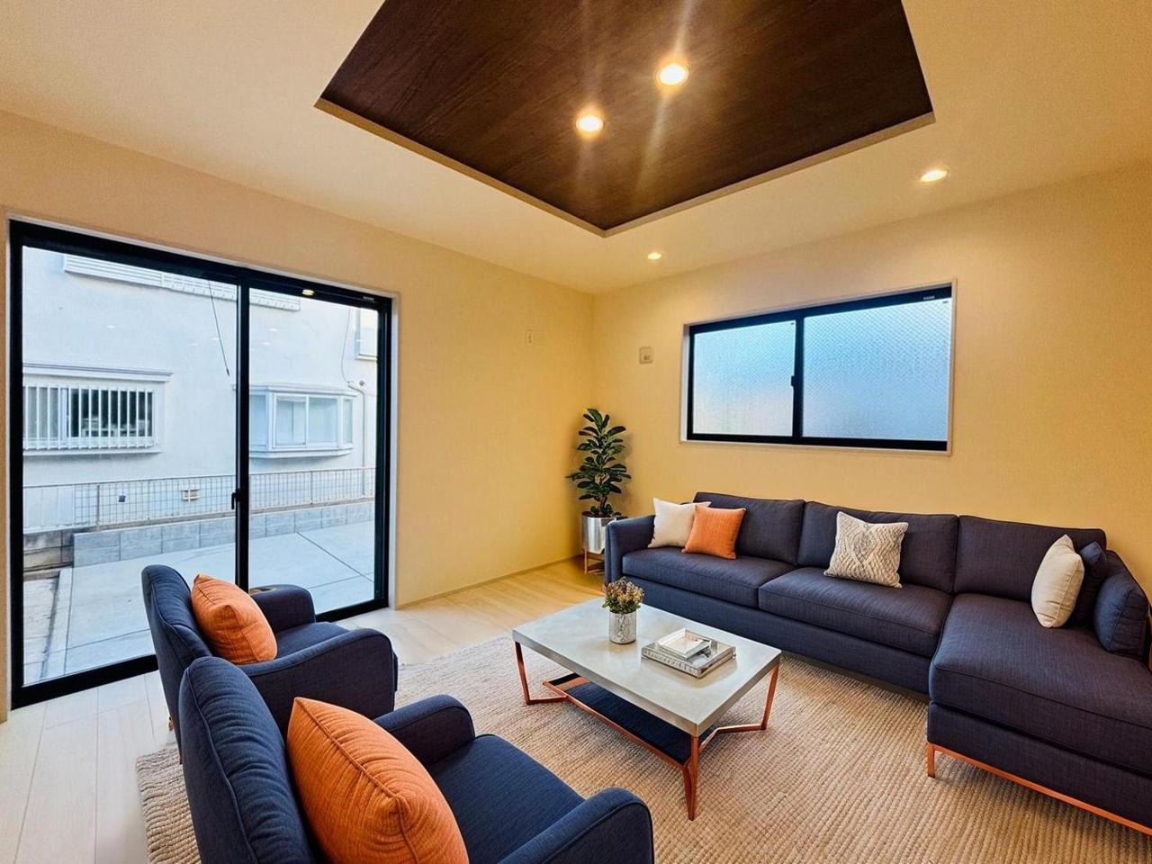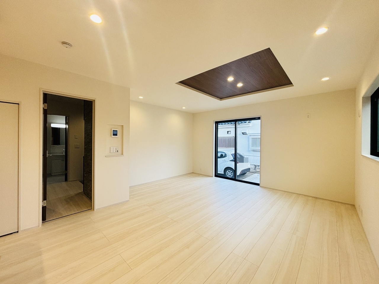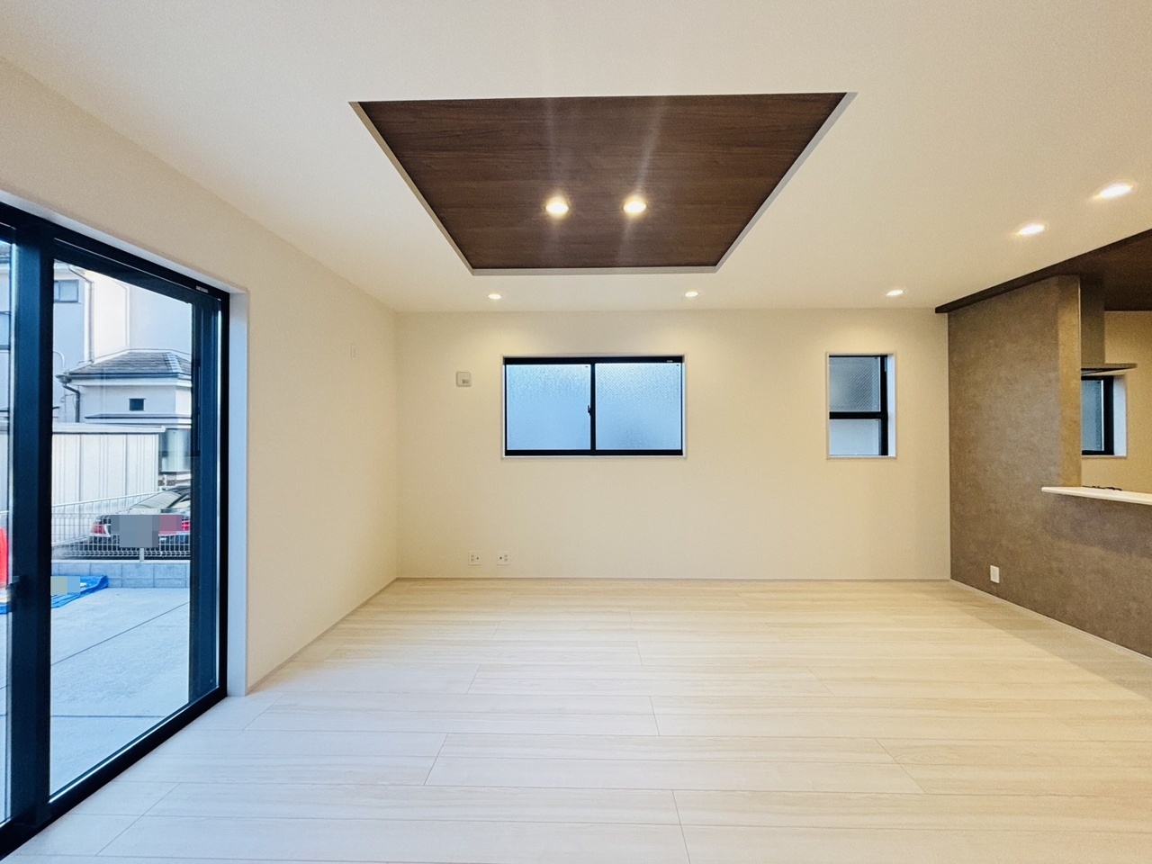 大きな開口部から明るい光が差し込む、日中の室内の明るさがこの部屋の魅力です。