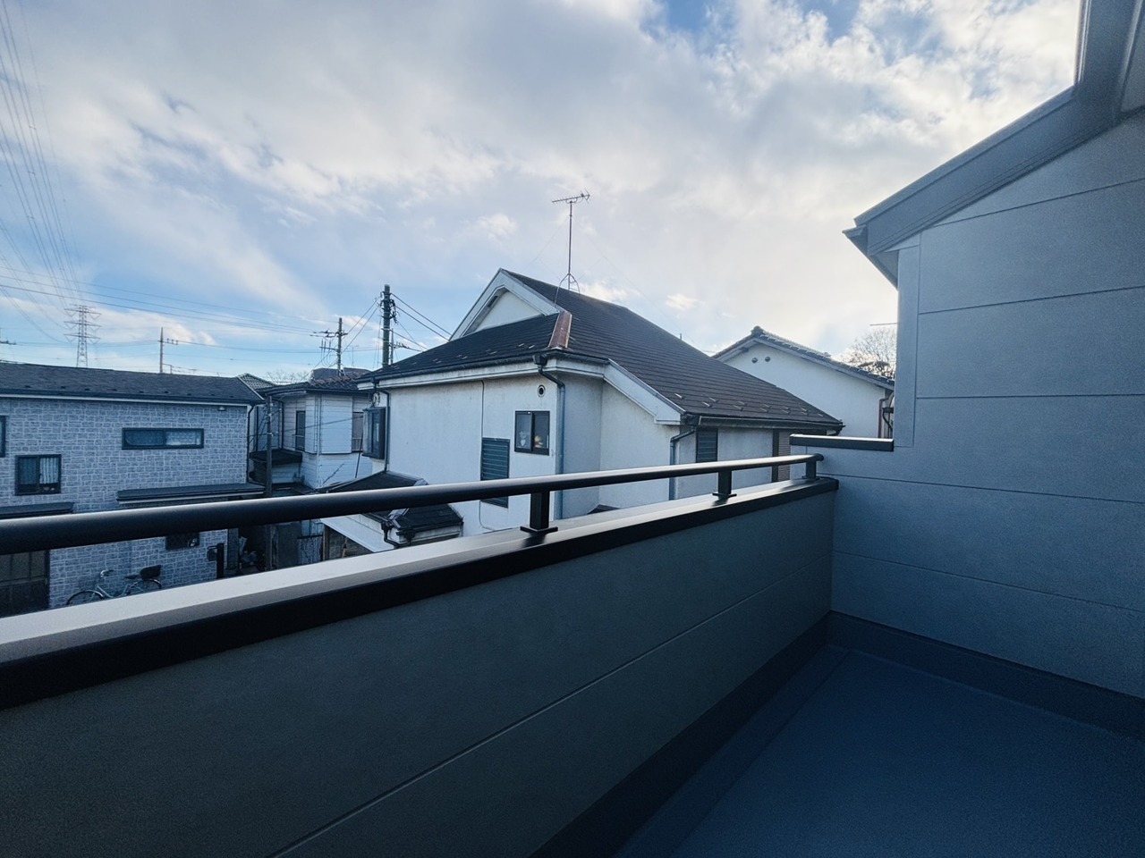 陽ざしが差込む明るいバルコニー。奥行きのあるバルコニーはお洗濯時に助かります。