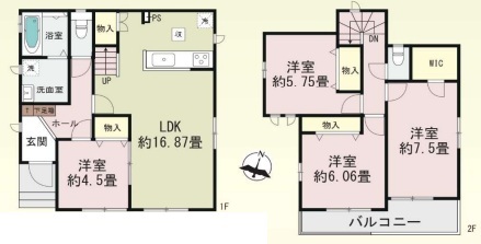 | 間取 | 4LDK (LDK16.8帖、洋室4.5帖、洋室7.5帖、洋室6.06帖、洋室5.75帖) | ||