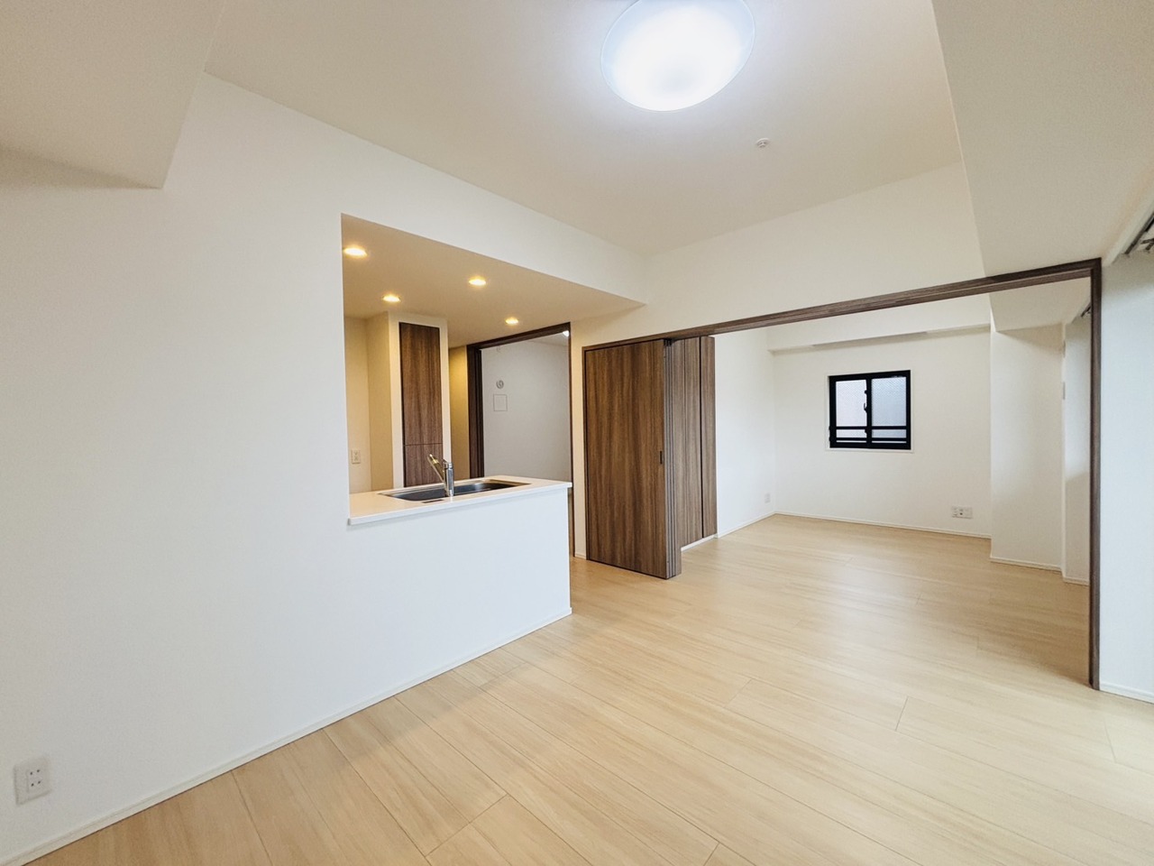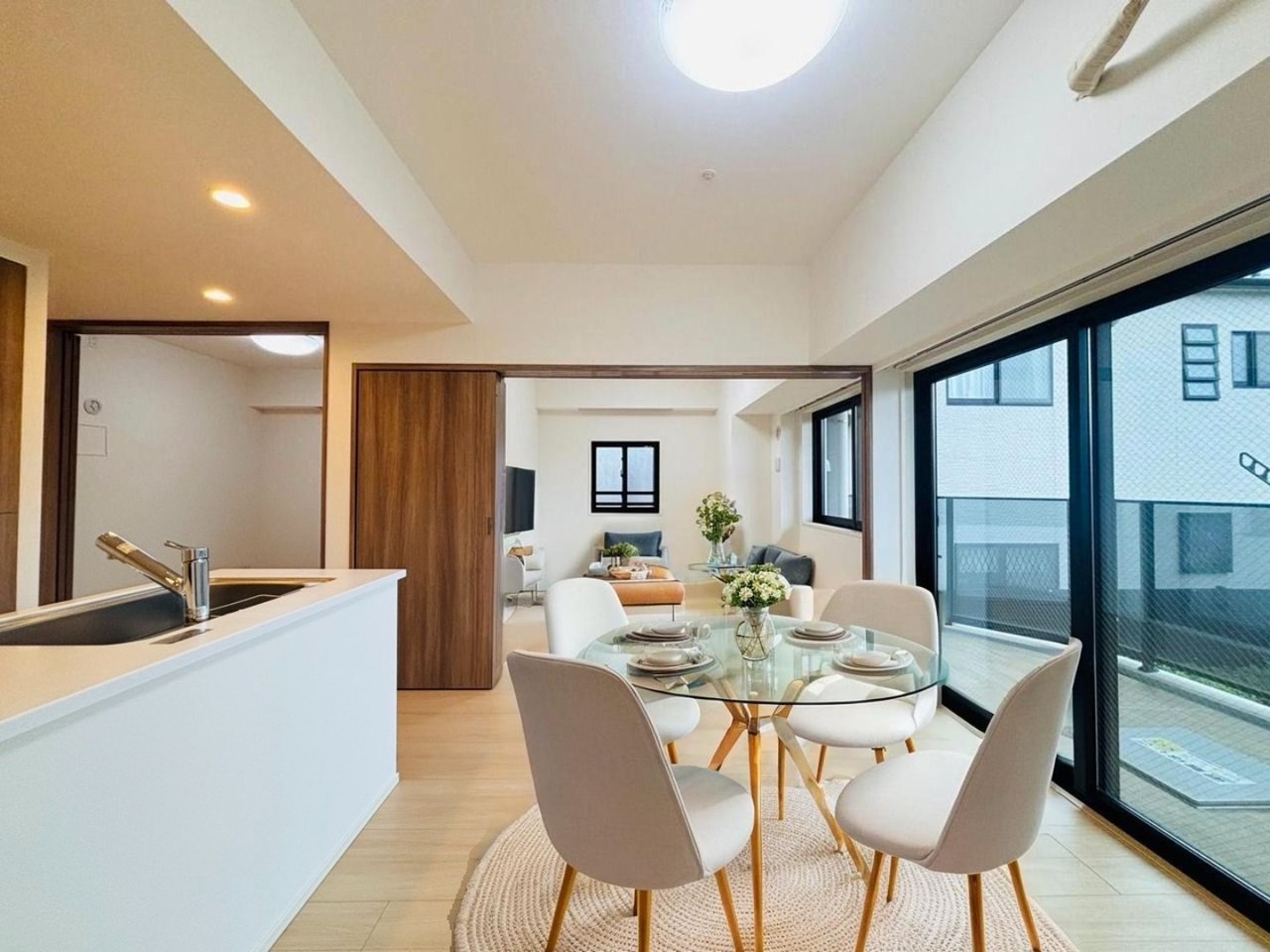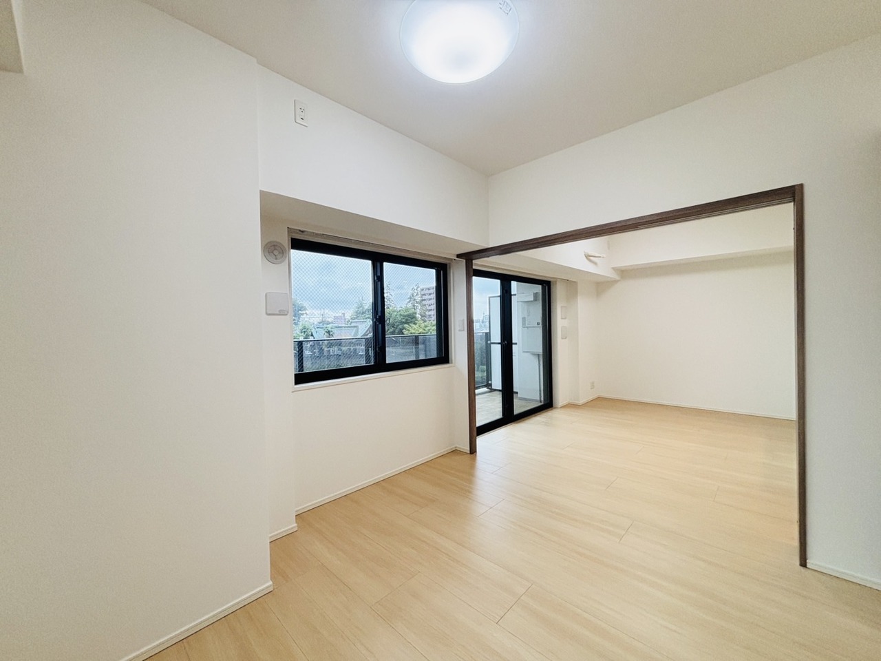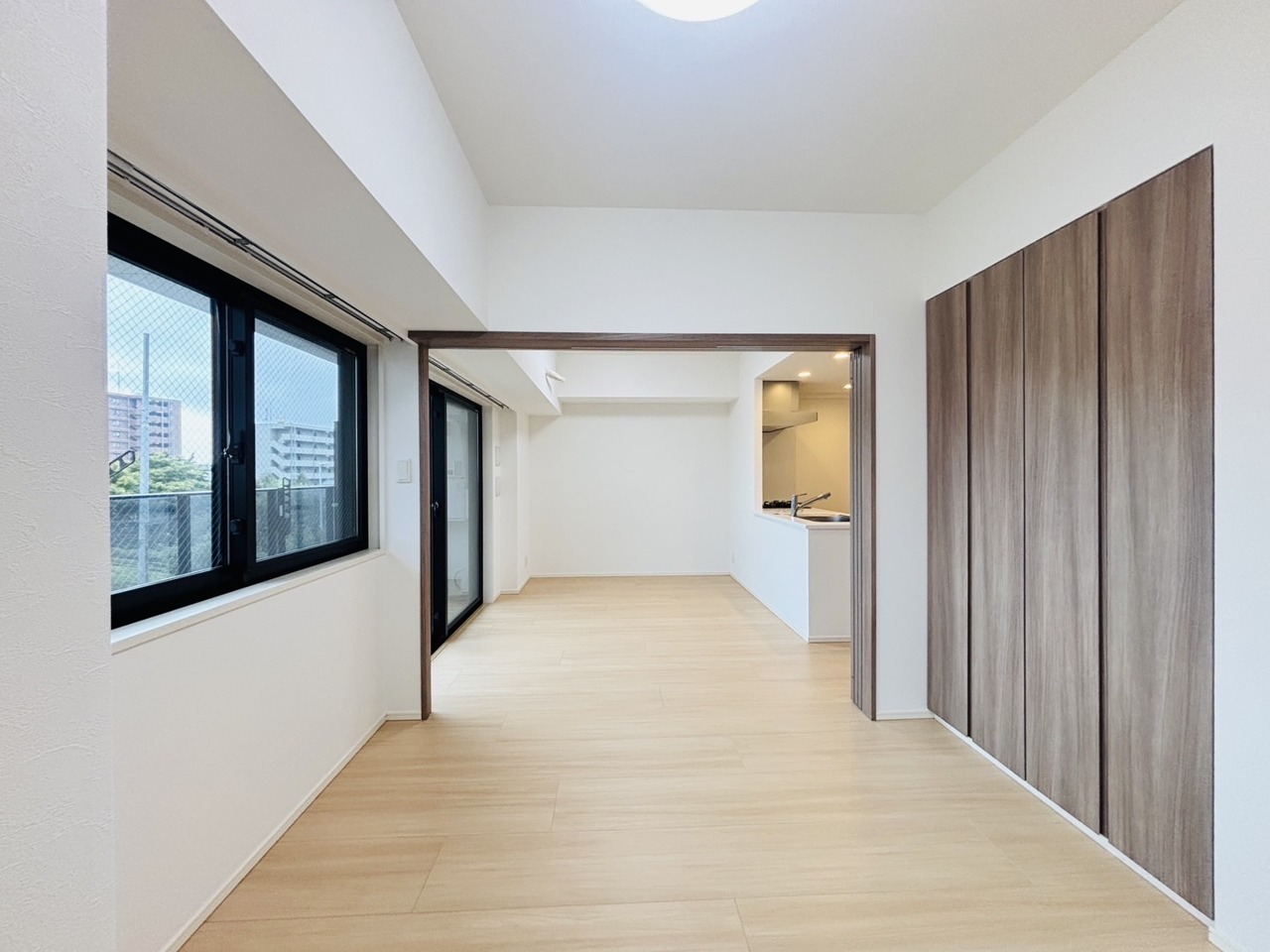 大きな開口部から明るい光が差し込む、日中の室内の明るさがこの部屋の魅力です。