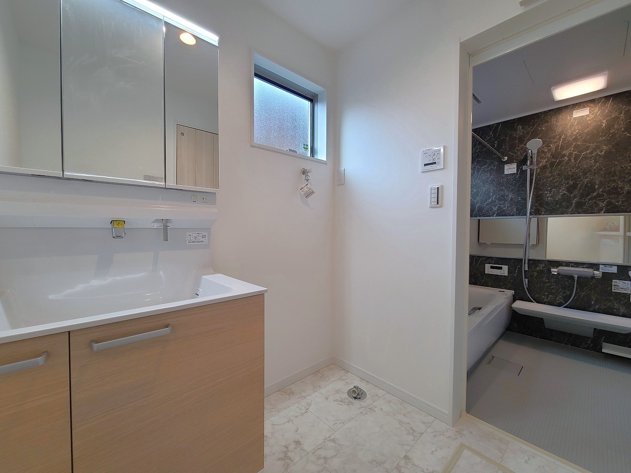 ゆとりの洗面スペースで朝の身支度もスムーズに行えます。