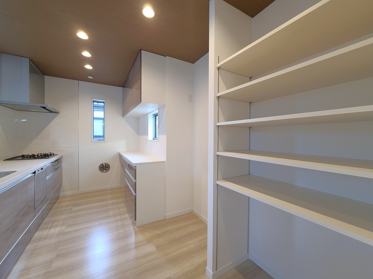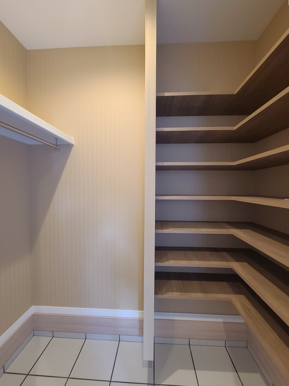 大容量のパントリーがございますので、非常食や食品のストックも沢山置けます。