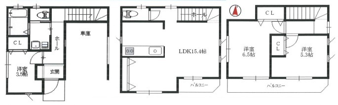 | 間取 | 3LDK (LDK15.4帖、洋室6.5帖、洋室5.3帖、洋室3.5帖) | ||