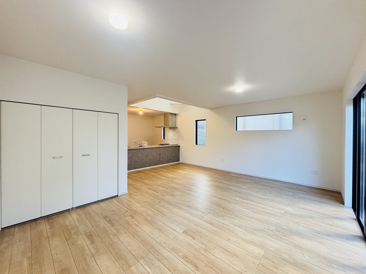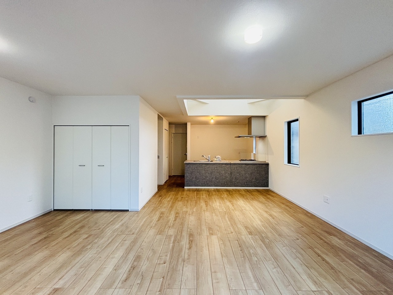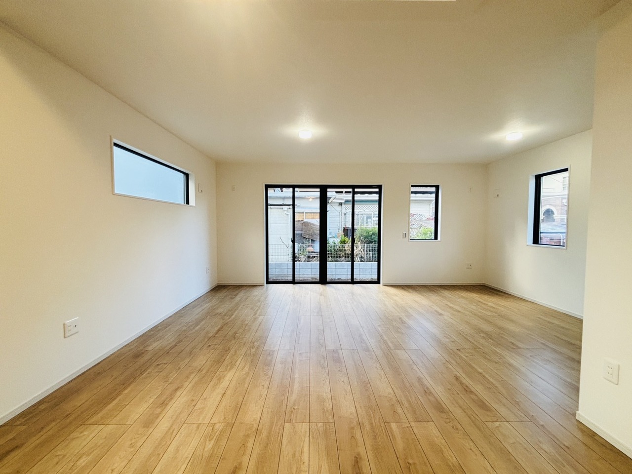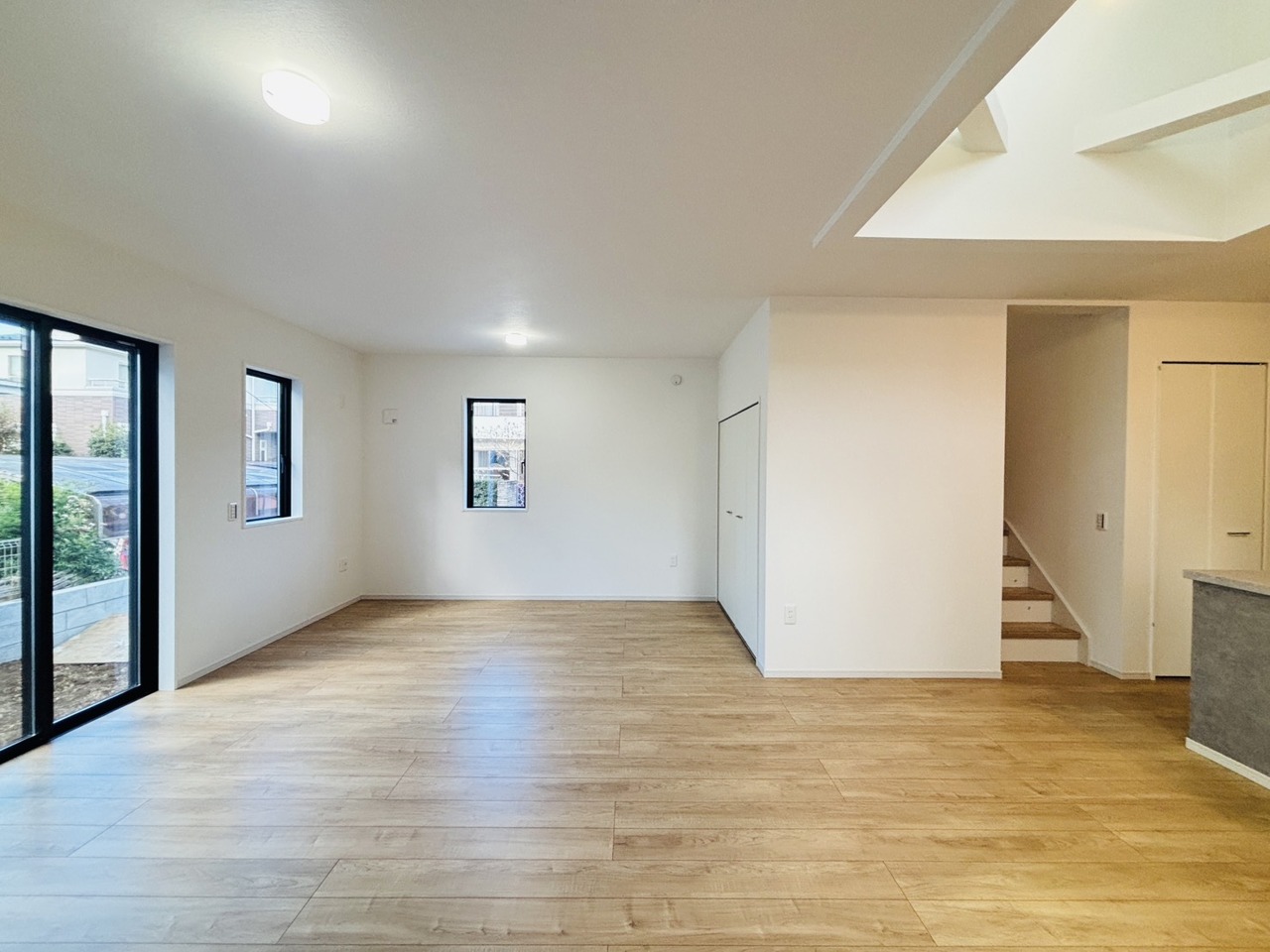 大きな開口部から明るい光が差し込むリビング。日中の室内の明るさがこの部屋の魅力です。