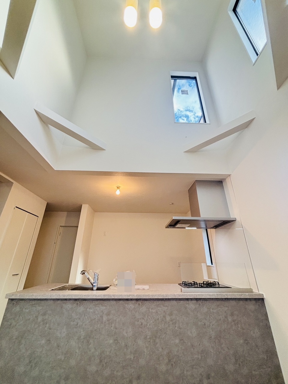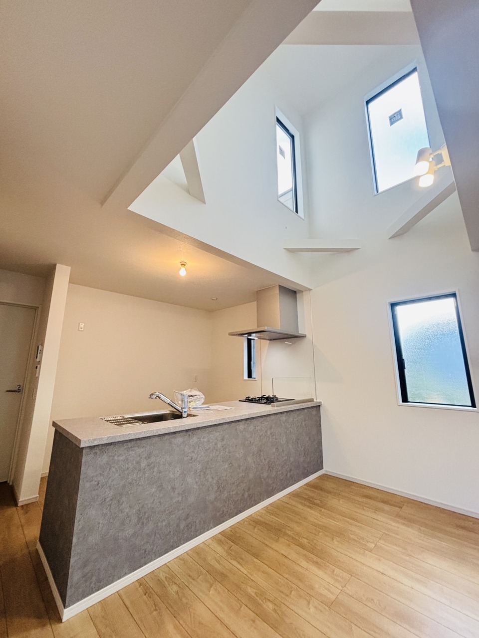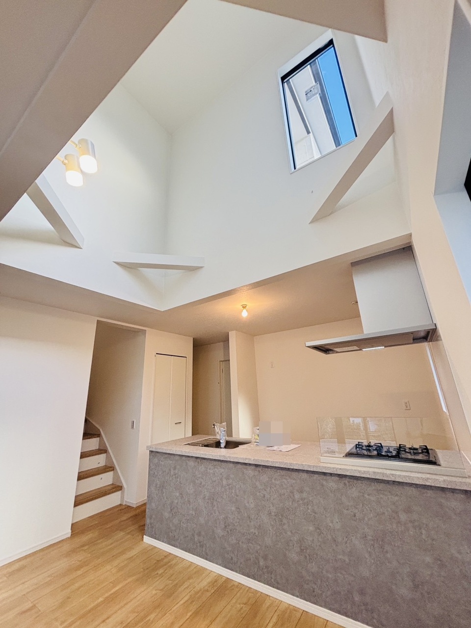 開放感ある上部の吹き抜けは、より高い場所からの陽を取り込み四季折々に室内を演出してくれます。