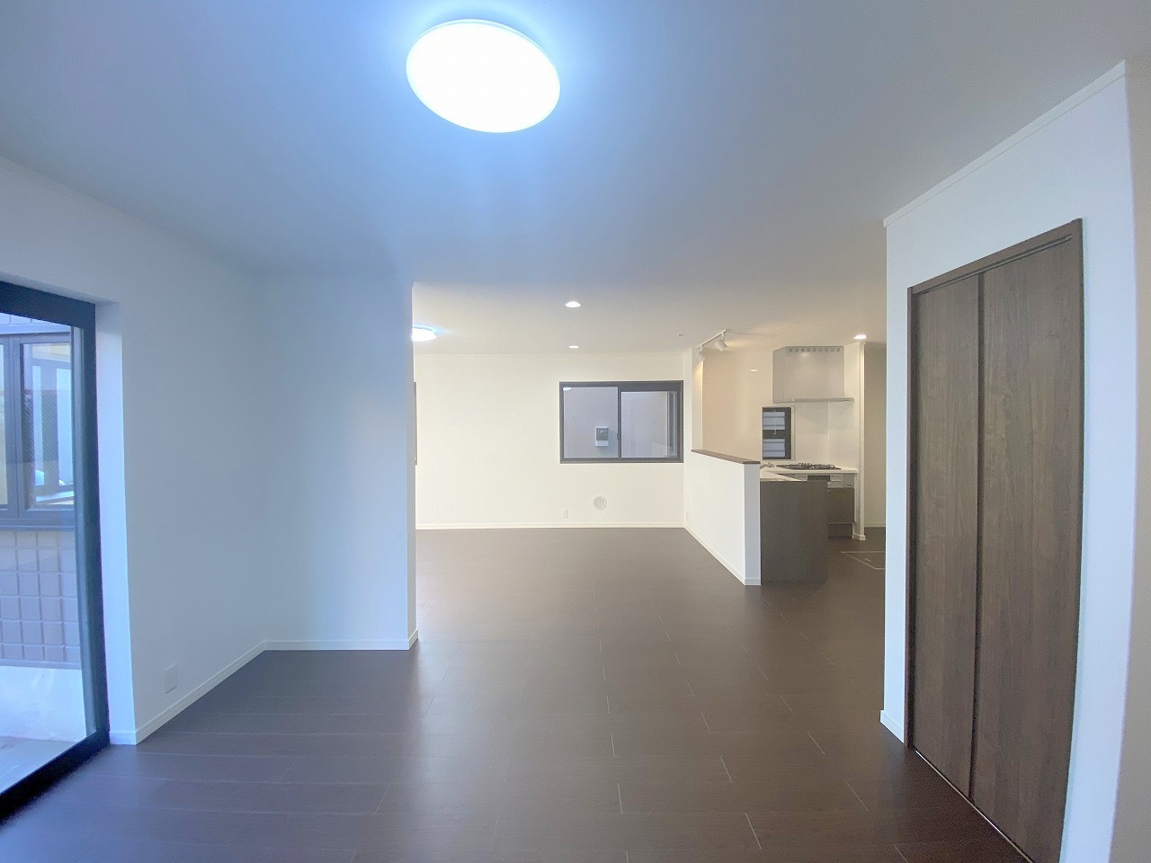 大画面TVの配置も可能なワイドリビングは約24.5帖。