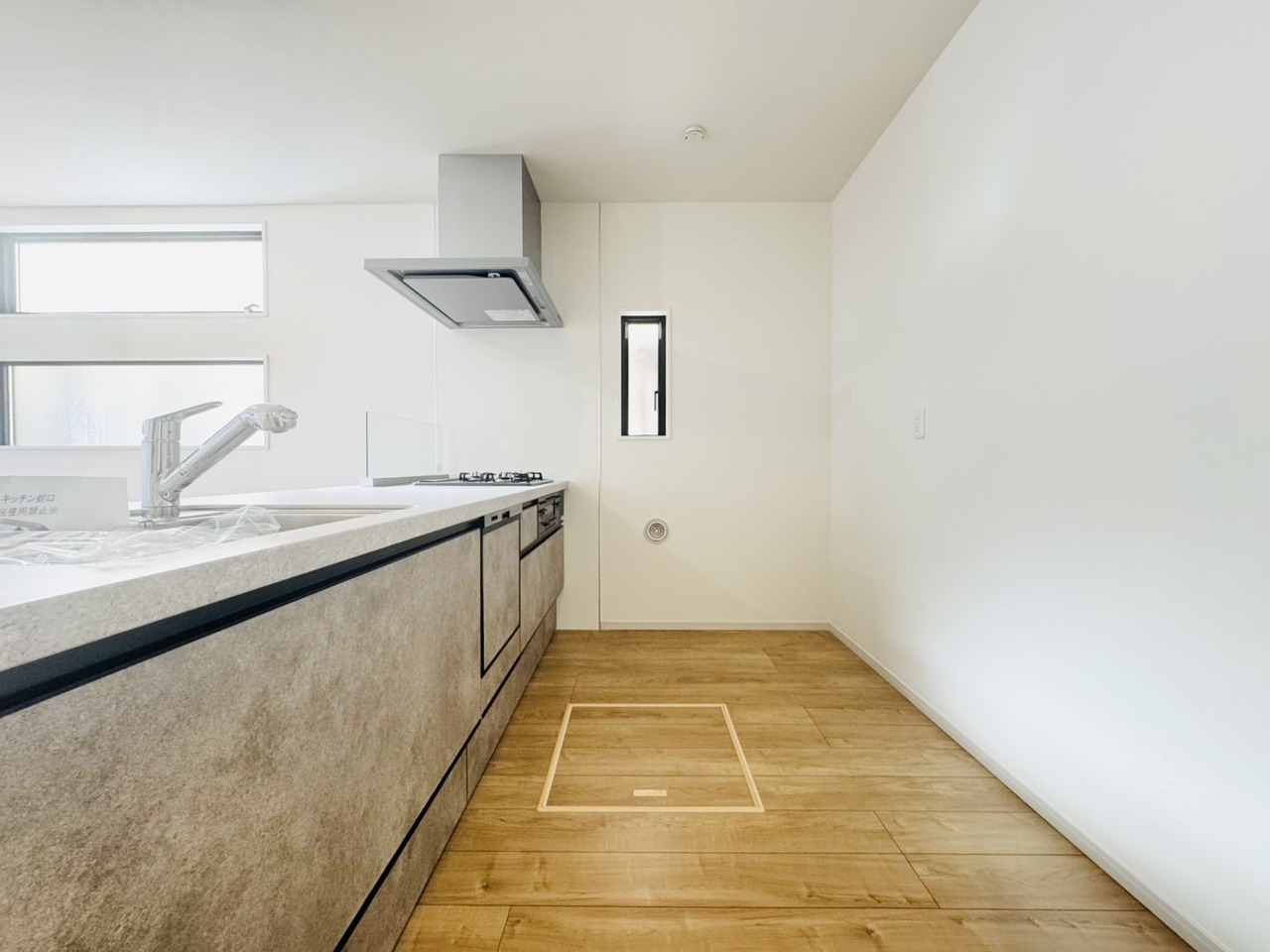 キッチン裏の空間もしっかり確保。カップボードも大きなものを置けそうです。
