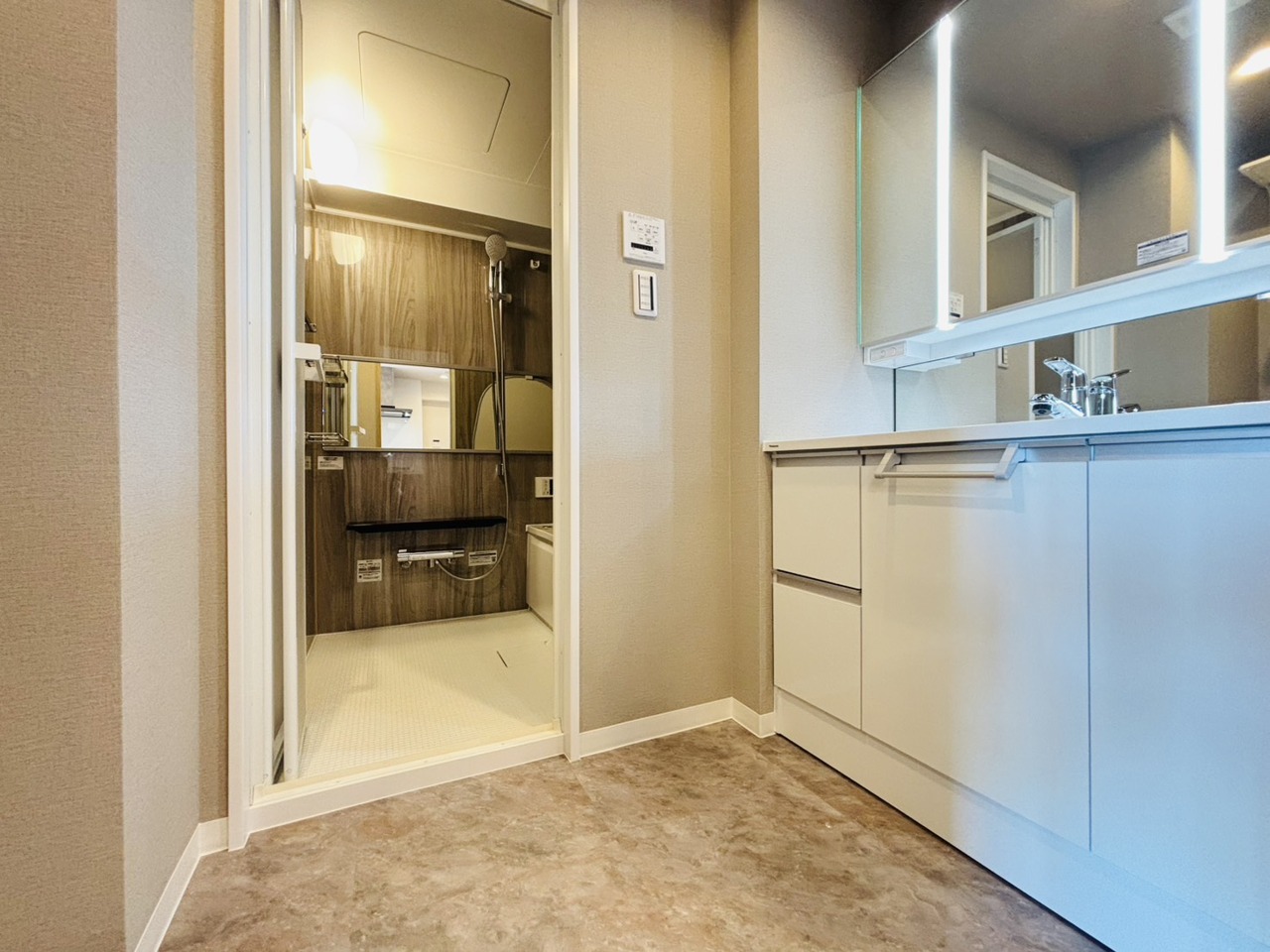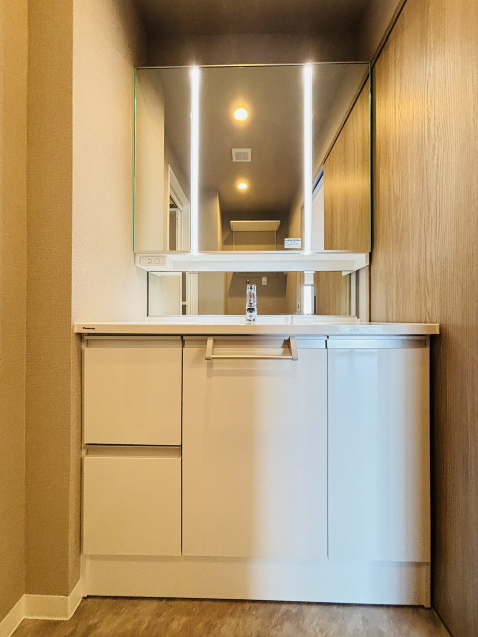 収納力と機能性に優れた、お手入れラクラク洗面化粧台。