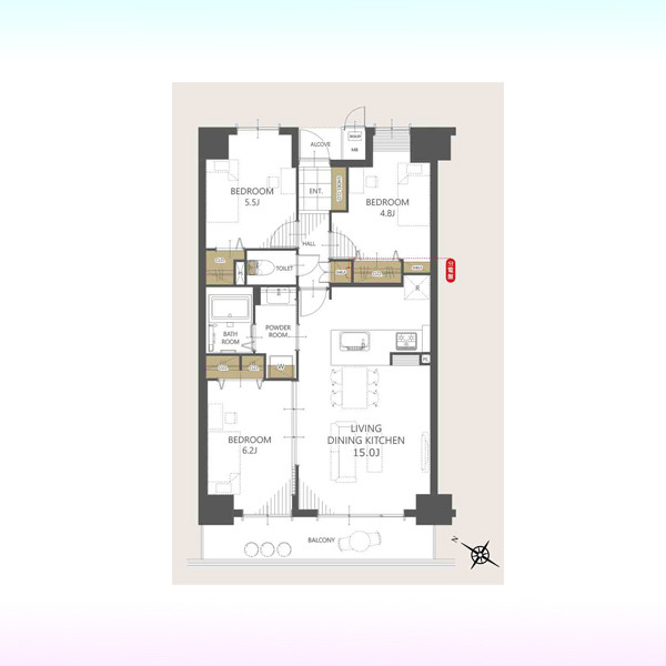 | バルコニー面積 | 7.8m² 南西向き | ||