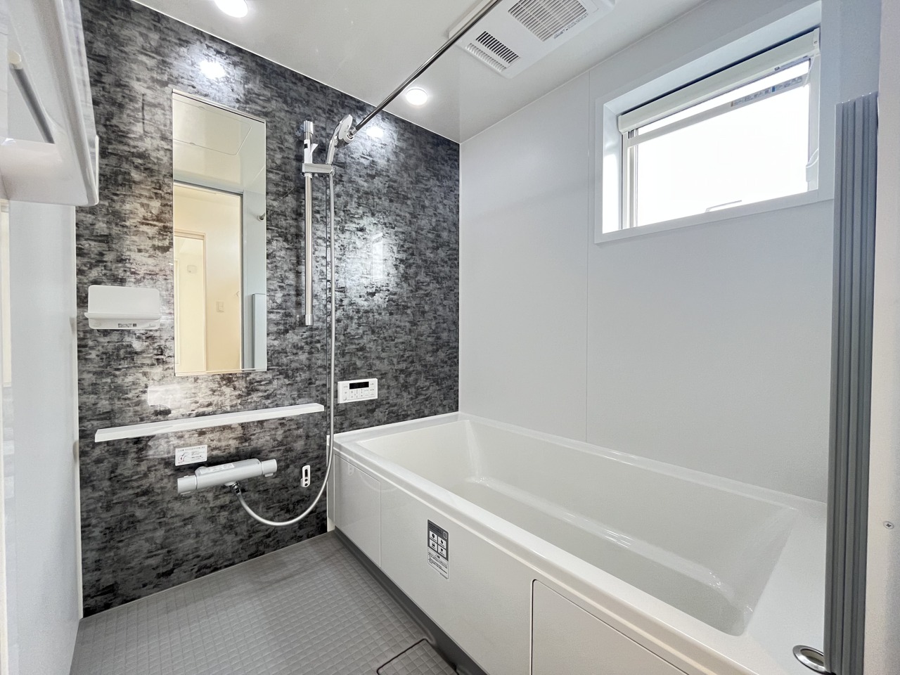 落ち着いた色味の浴室で1日の疲れをゆっくりと癒してください。