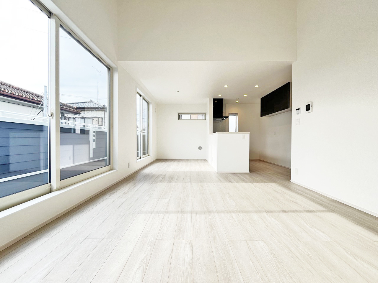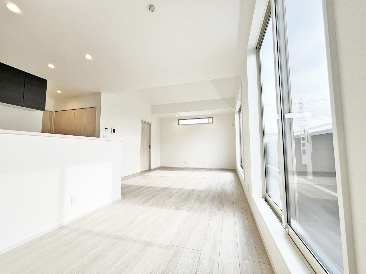 大きな開口部から明るい光が差し込むリビング。日中の室内の明るさがこの部屋の魅力です。