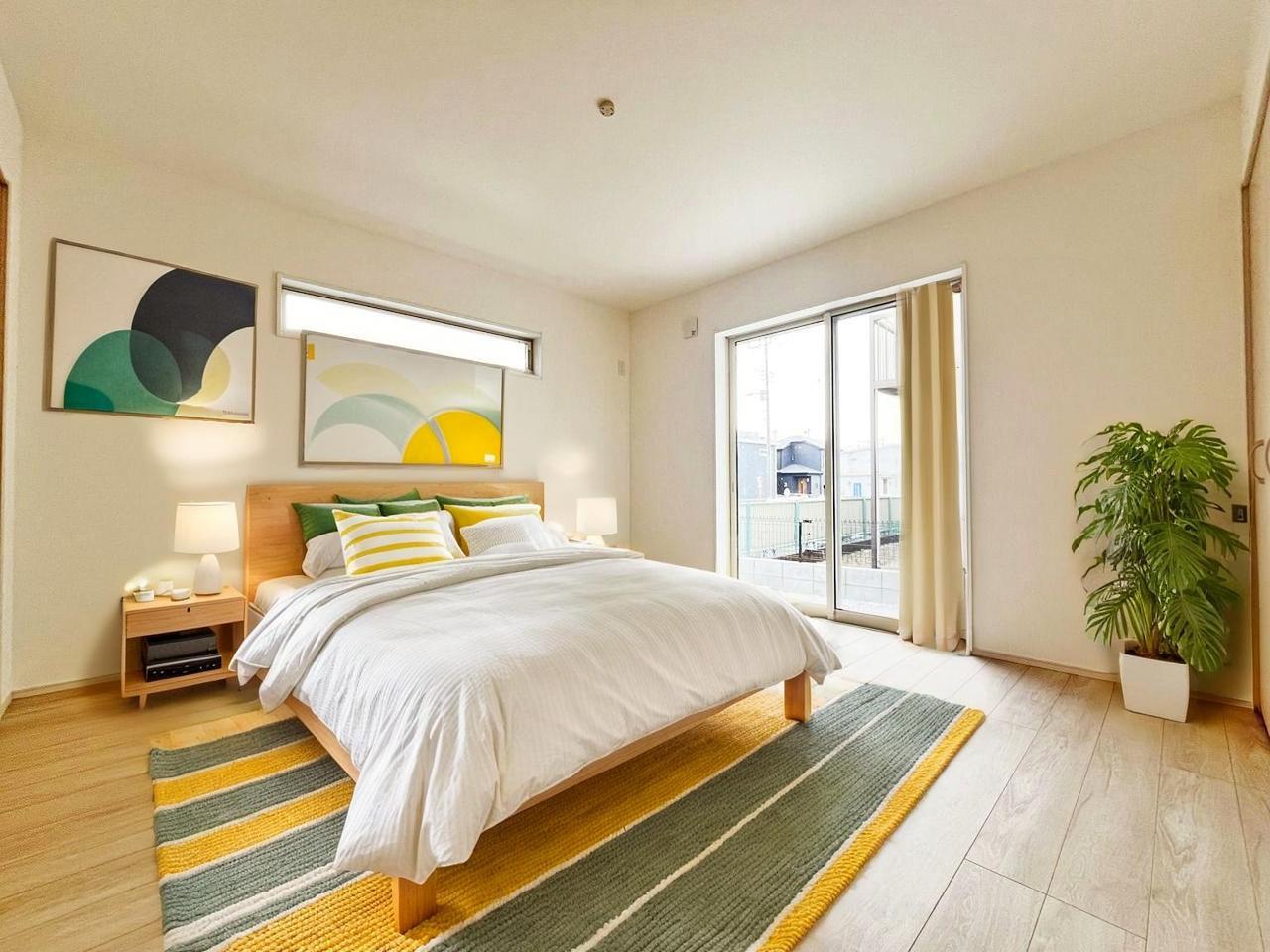 ゆとりのある寝室、陽光が入りやすく朝の目覚めも気持ち良く起こしてくれます。
