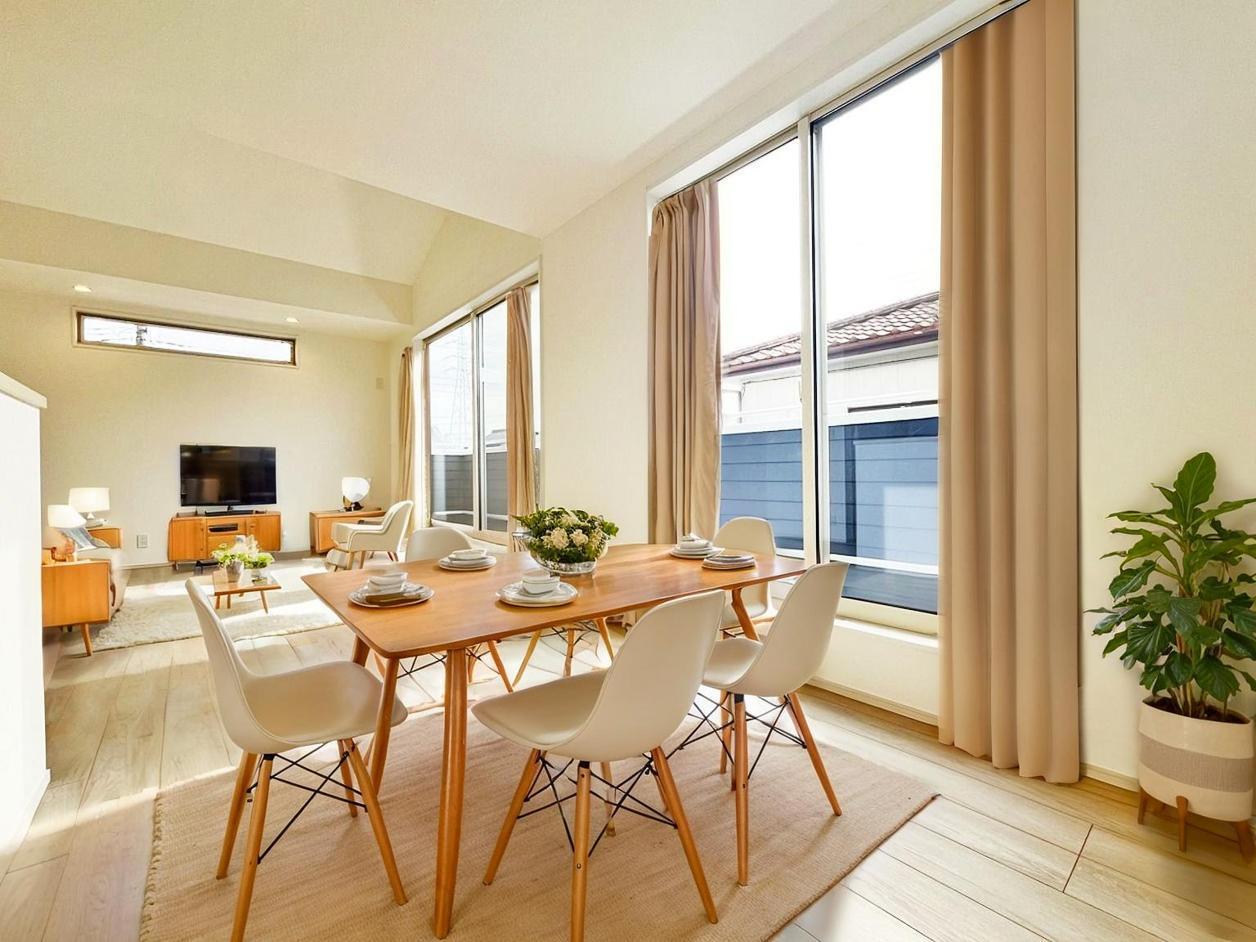 家族団欒のリビング。陽光差し込む食卓には家族の会話とスマイルが溢れます。いつまでもここで食卓を囲みたくなる、そう感じさせてくれるスペース。