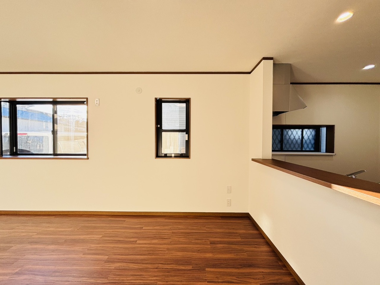 キッチン裏の空間もしっかり確保。カップボードも大きなものを置けそうです。