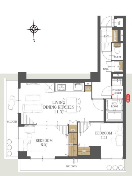 | 間取 | 2LDK (LDK11.3帖) | ||