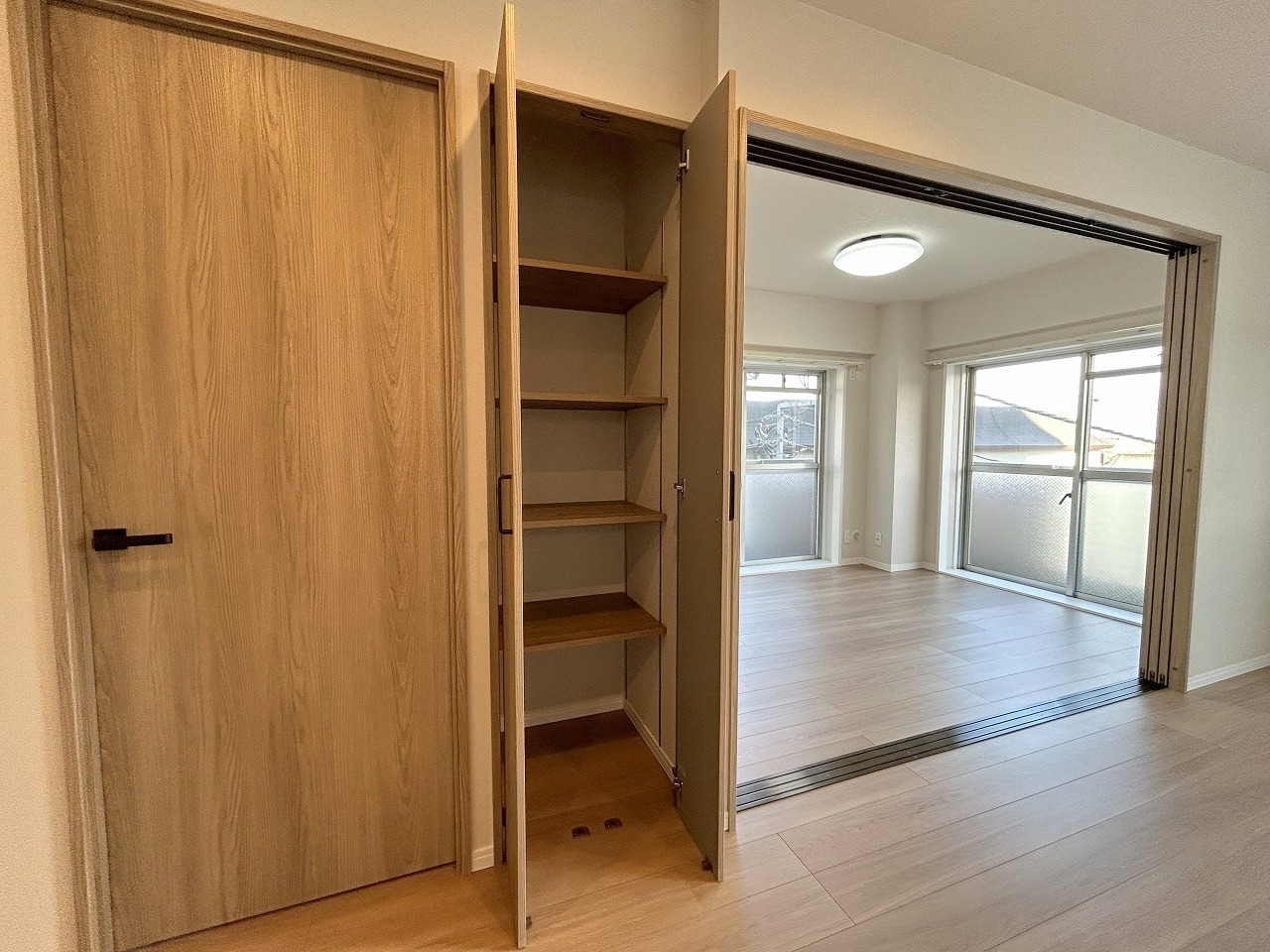 LDK+隣接洋室、開放すれば広々空間に。おもてなしスペースにもどうぞ。