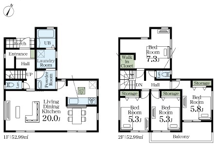 | 間取 | 4LDK (LDK20帖、洋室7.3帖、洋室5.8帖、洋室5.3帖、洋室5.3帖) | ||