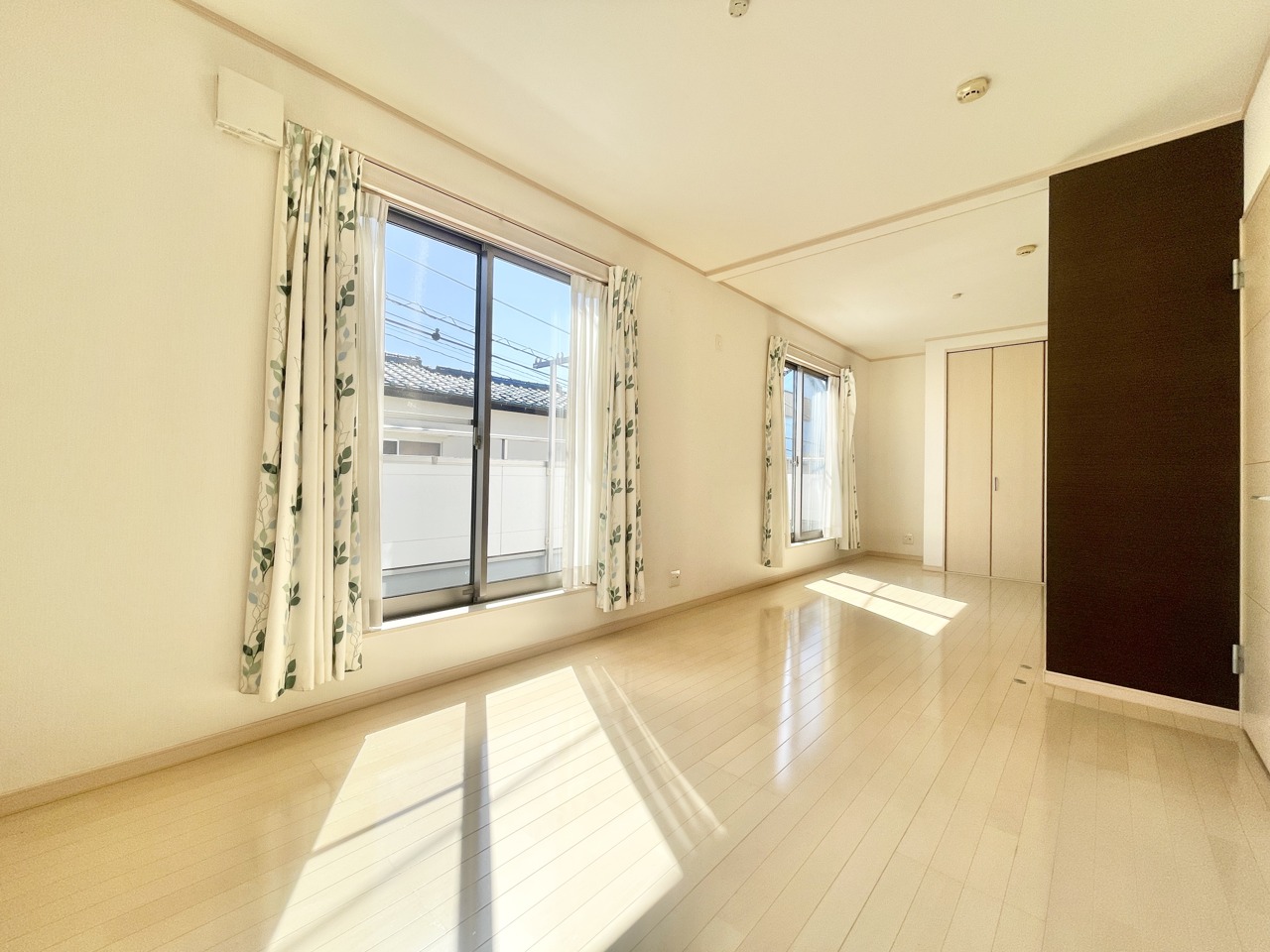 将来的には間仕切りして2部屋に変更可能な洋間。成長に合わせた間取り変更が可能なタイプ。
