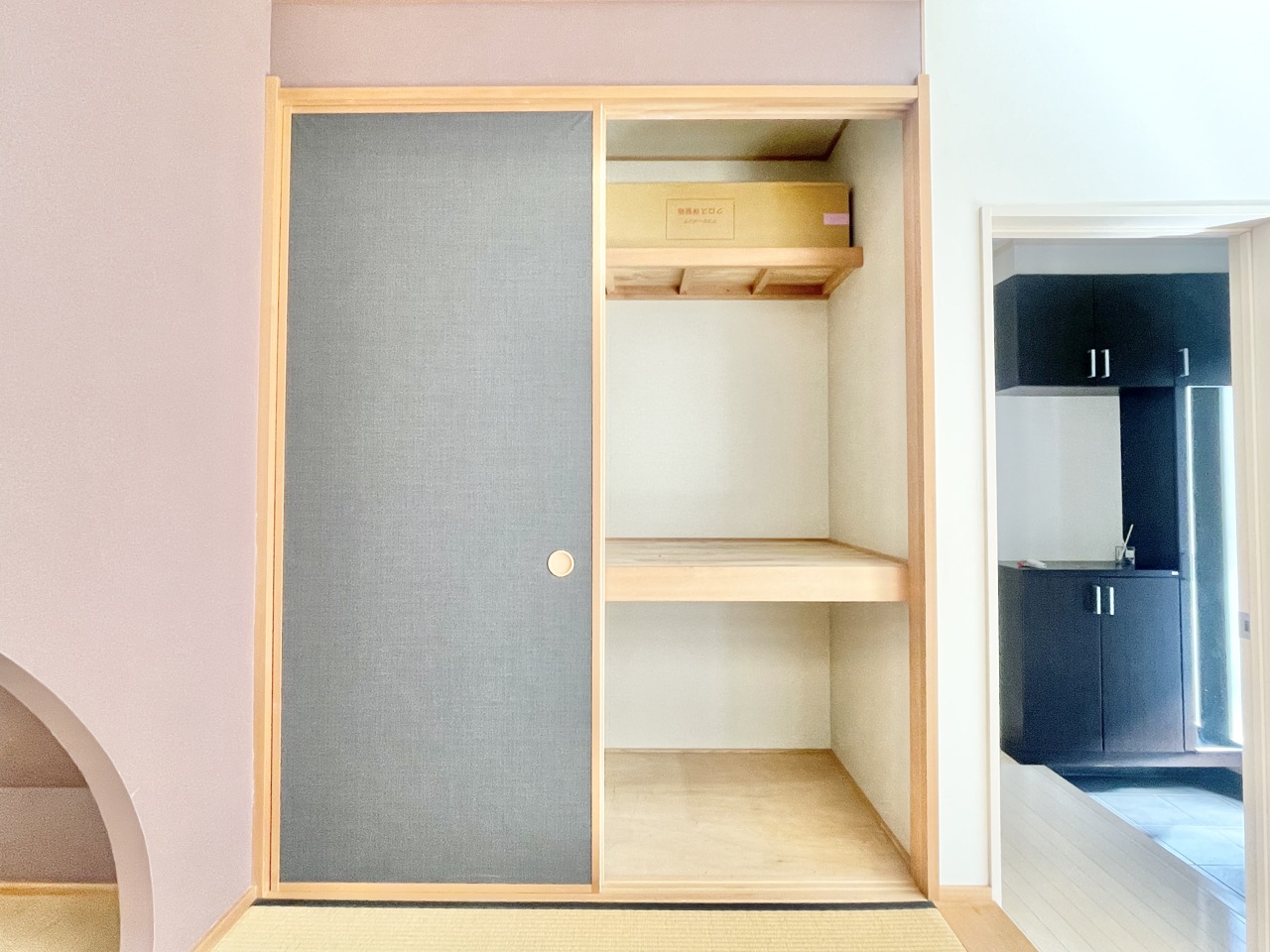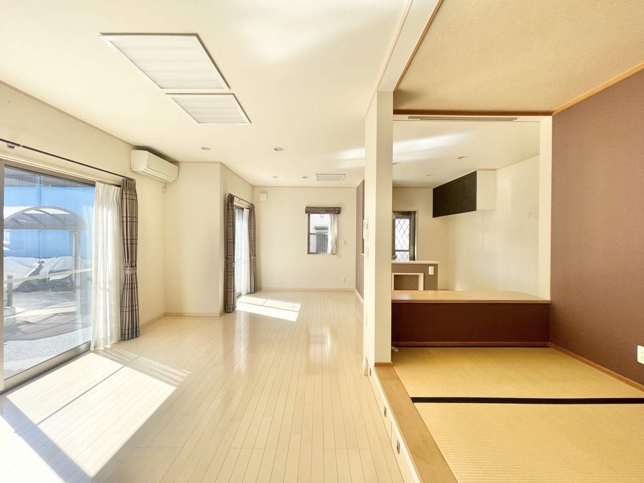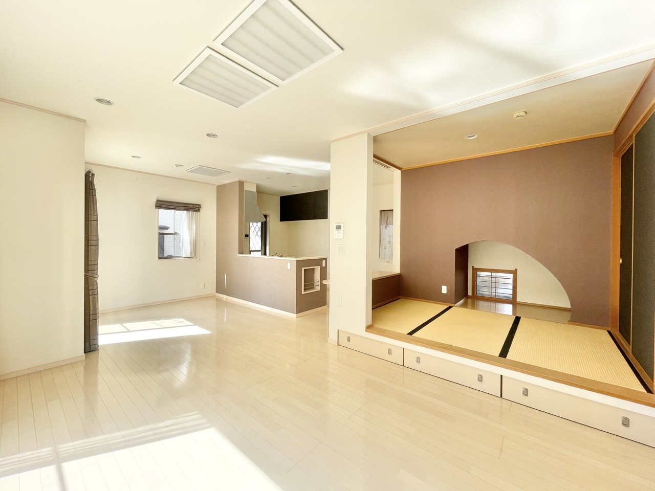 ・和室付きで、来客用の客間として、子どもの遊び場やお昼寝スペースとして、あるいはリビングと一体使いしてくつろぎスペースにも用途が広がる万能スペース。