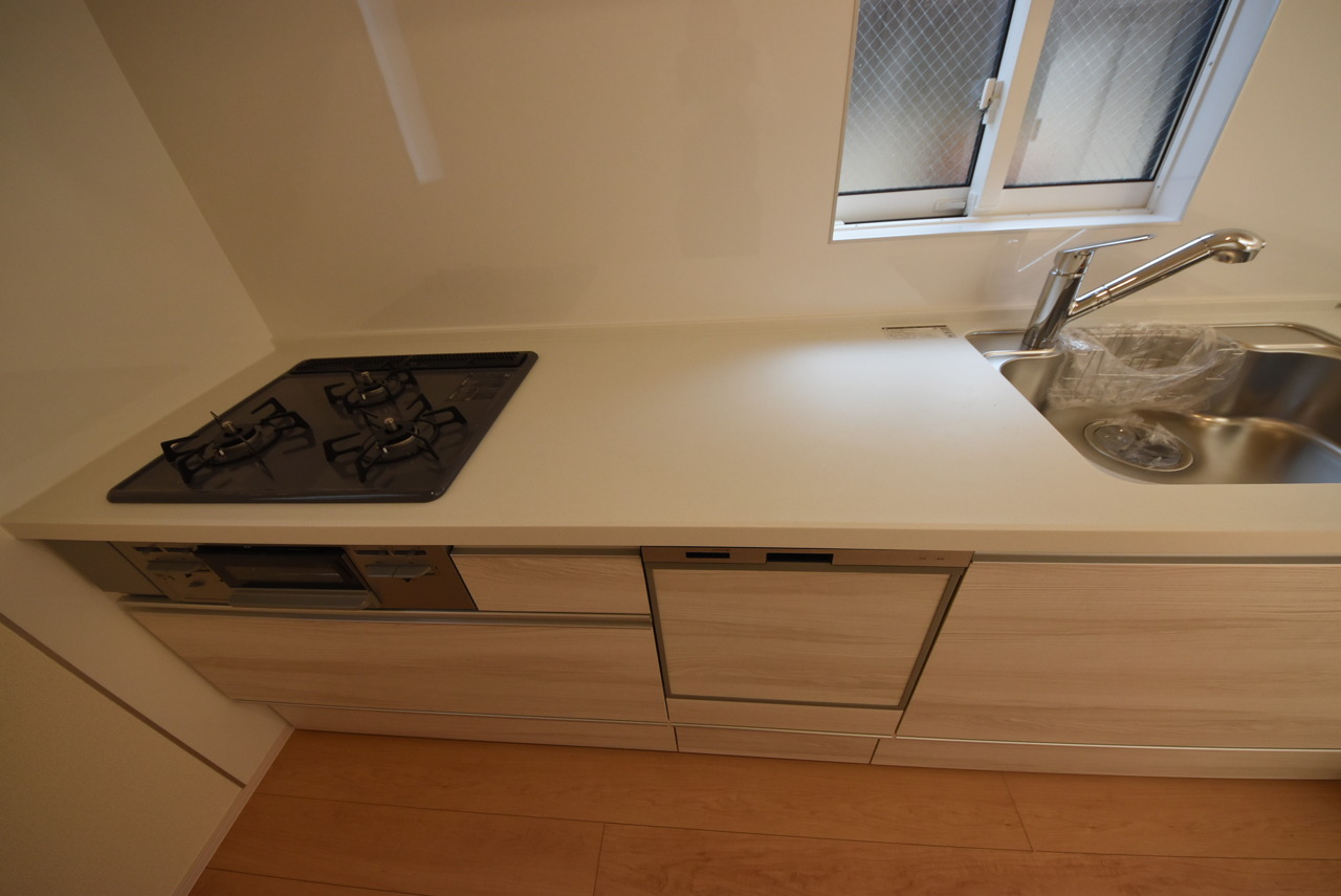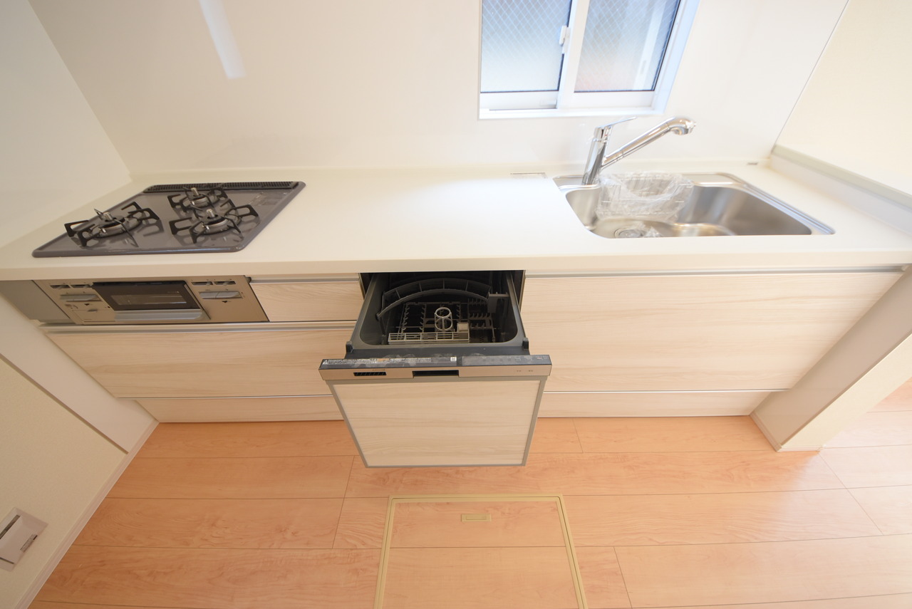 時短に活躍する食器洗浄機や一杯の水も楽しめる浄水器があるシステムキッチン。