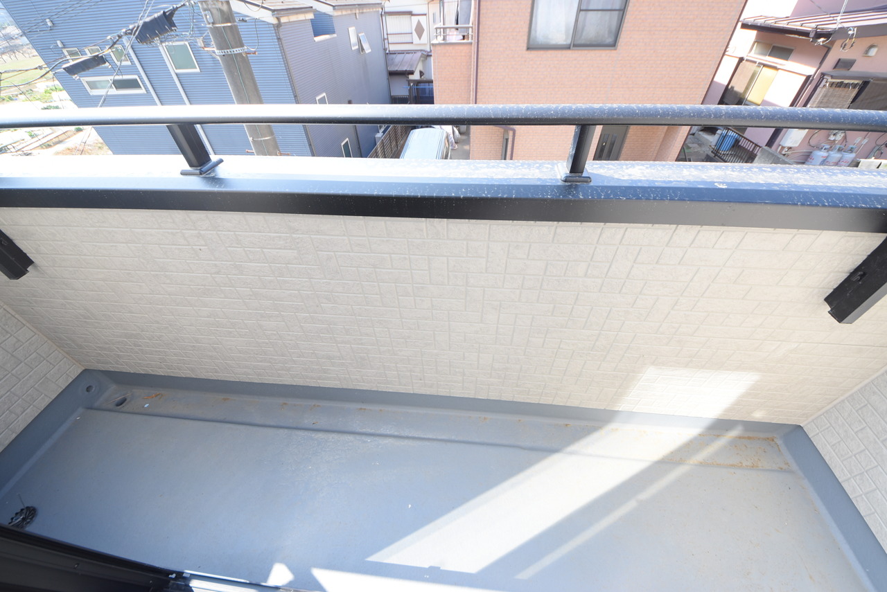 陽ざしが差込む明るいバルコニー。奥行きのあるバルコニーはお洗濯時に助かります。