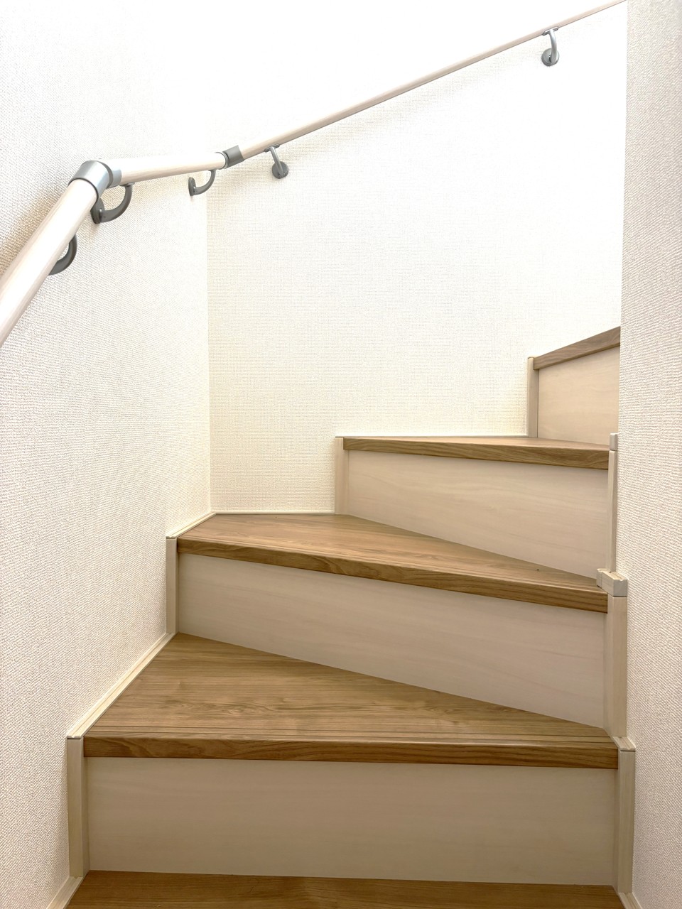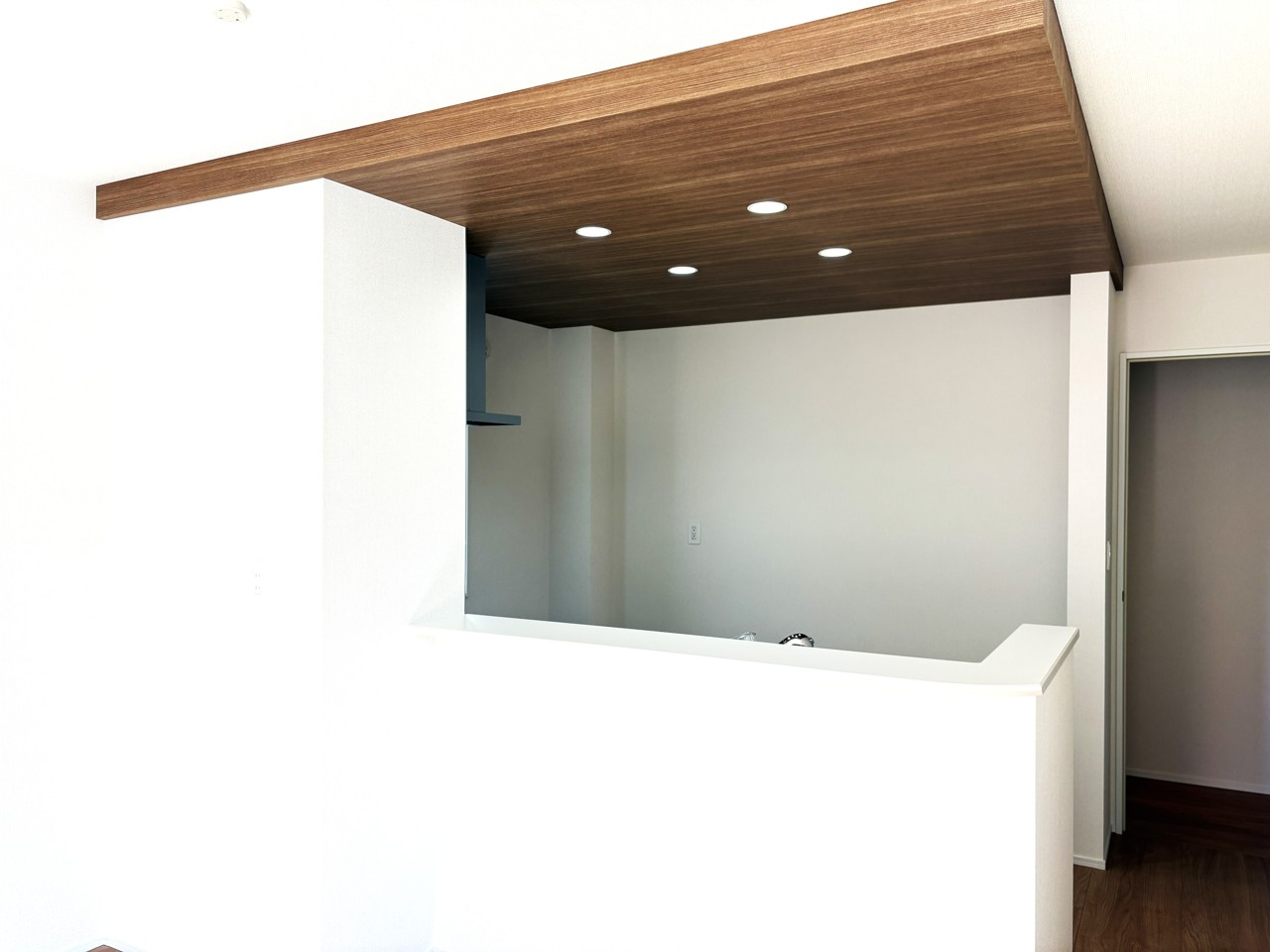 温かみのある木材と柔らかな壁紙が織りなす、穏やかな空間。
