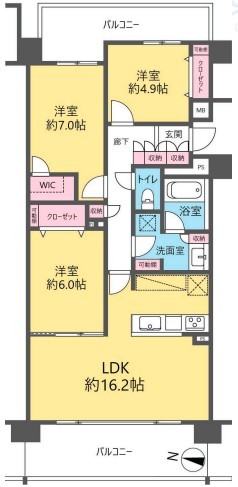 | 間取 | 3LDK (LDK16.2帖、洋室7.0帖、洋室6.0帖、洋室4.9帖) | ||
