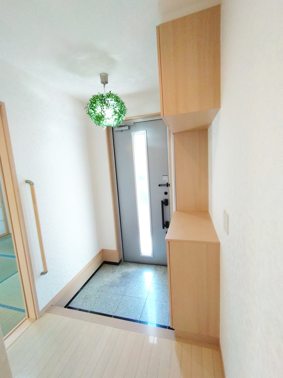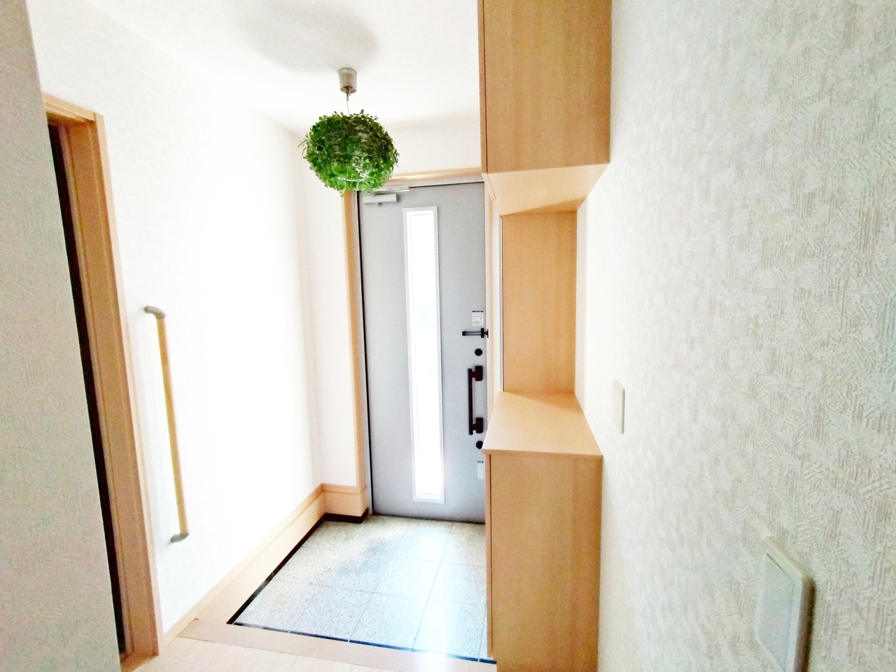 明るく開放的な玄関、靴の脱ぎ履きもしやすく、収納も豊富でご家族皆様の靴をスッキリ収納できます。