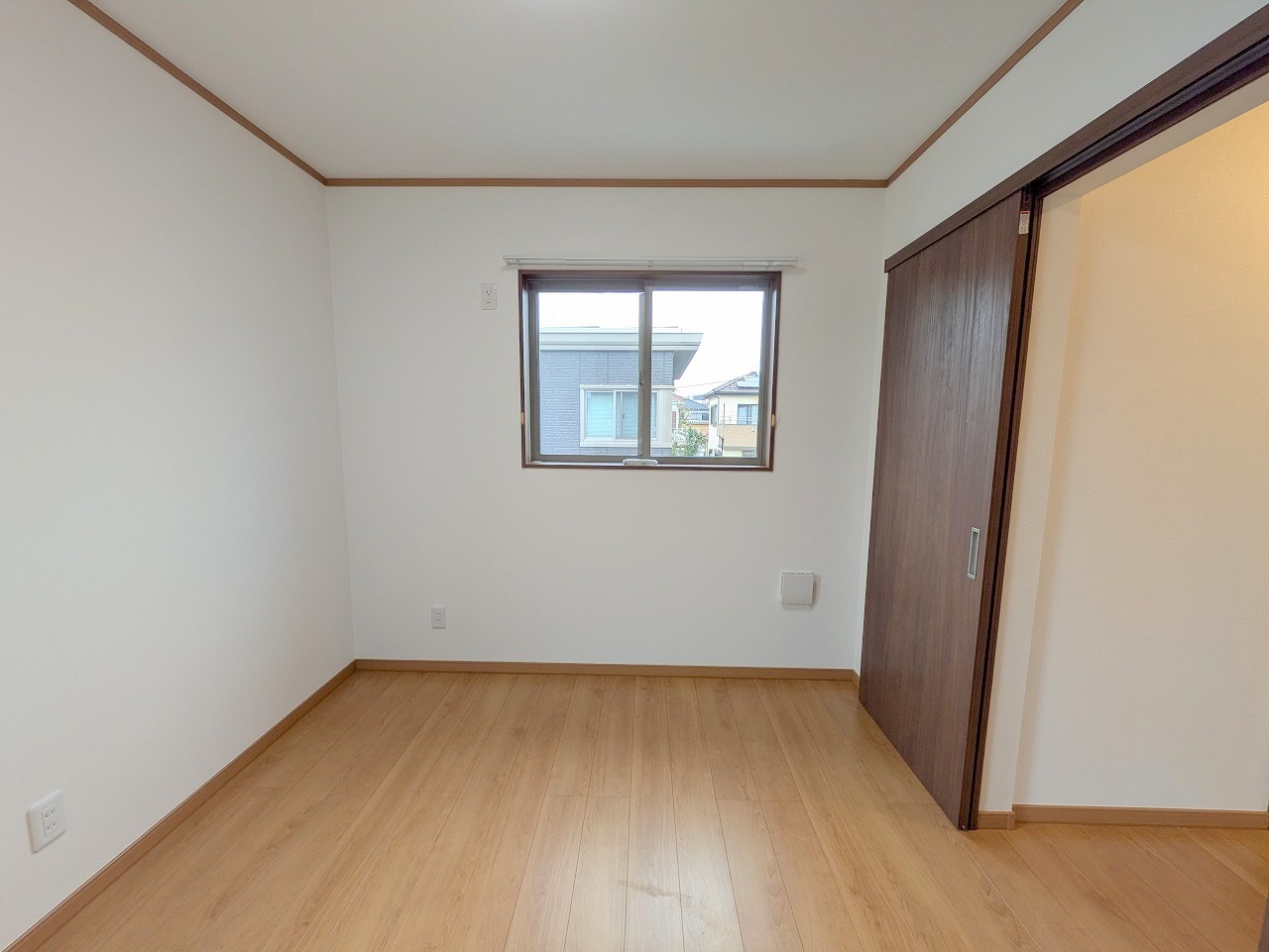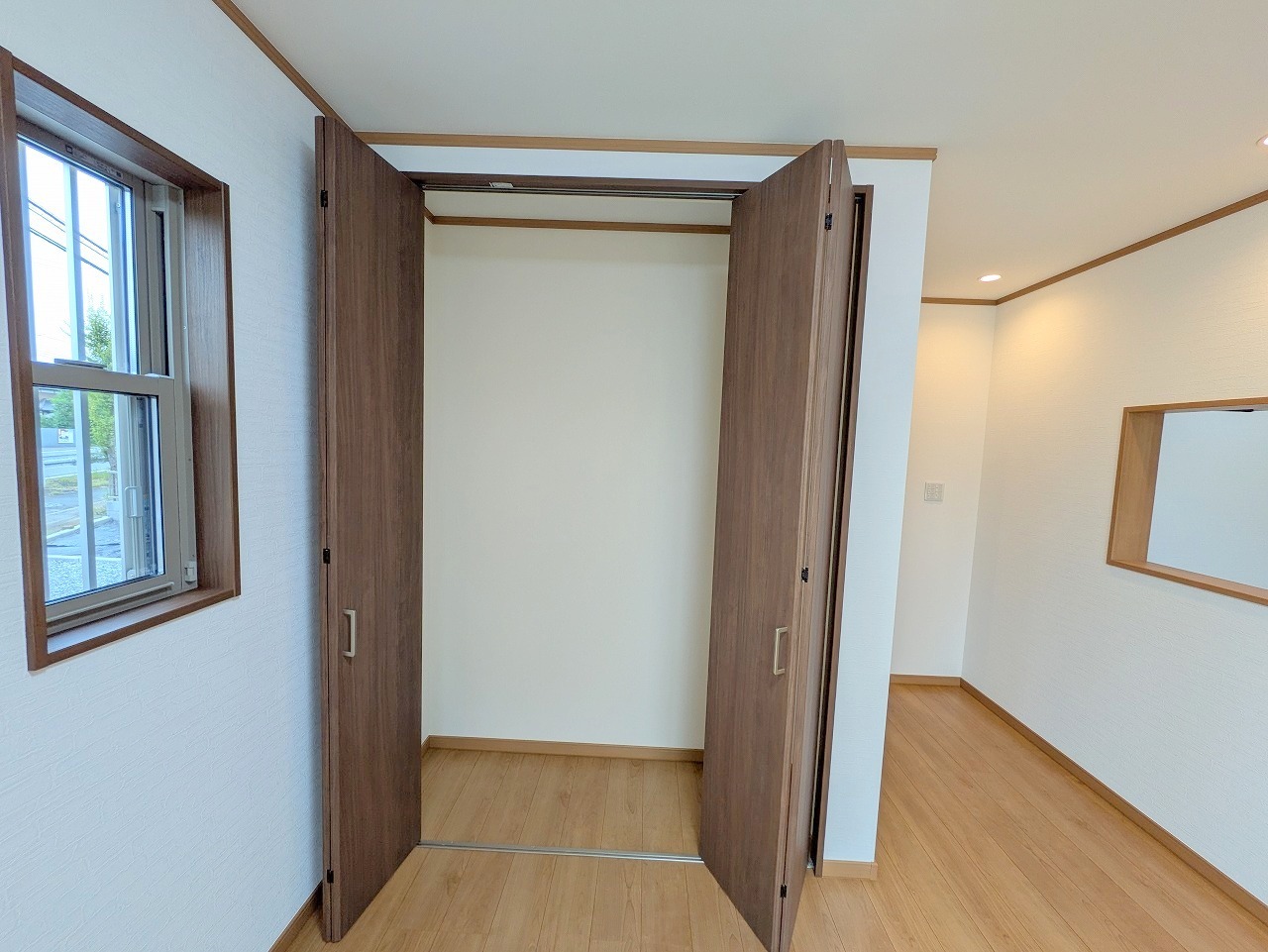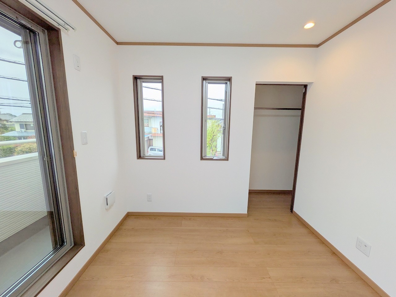 大きめのベッドを置いても、まだゆとりが持てる大きさ。8帖の主寝室。