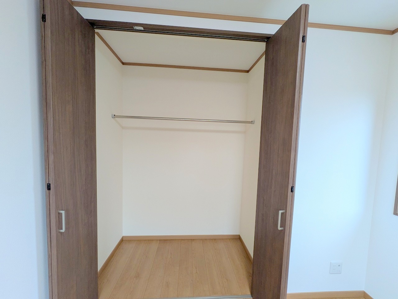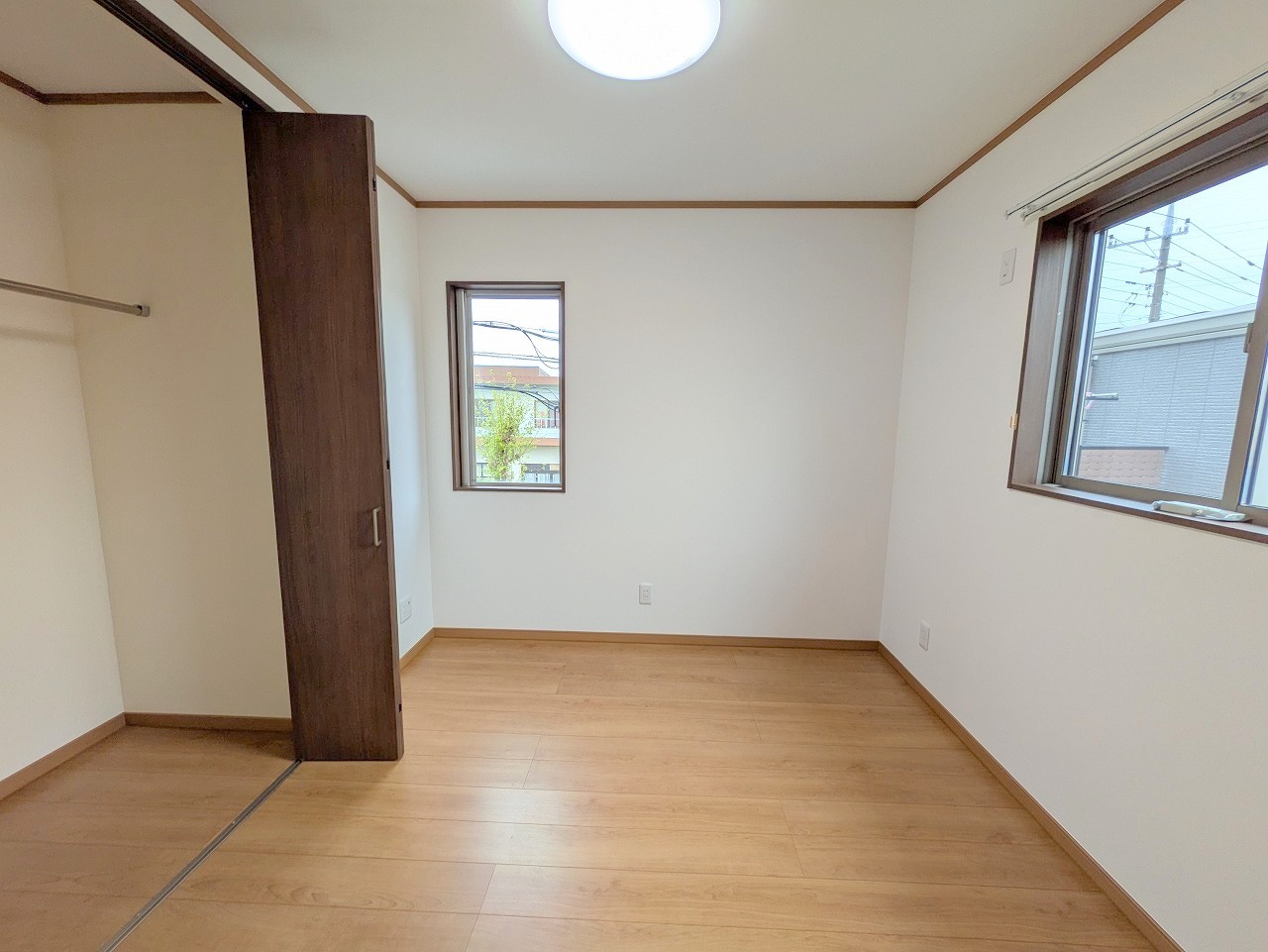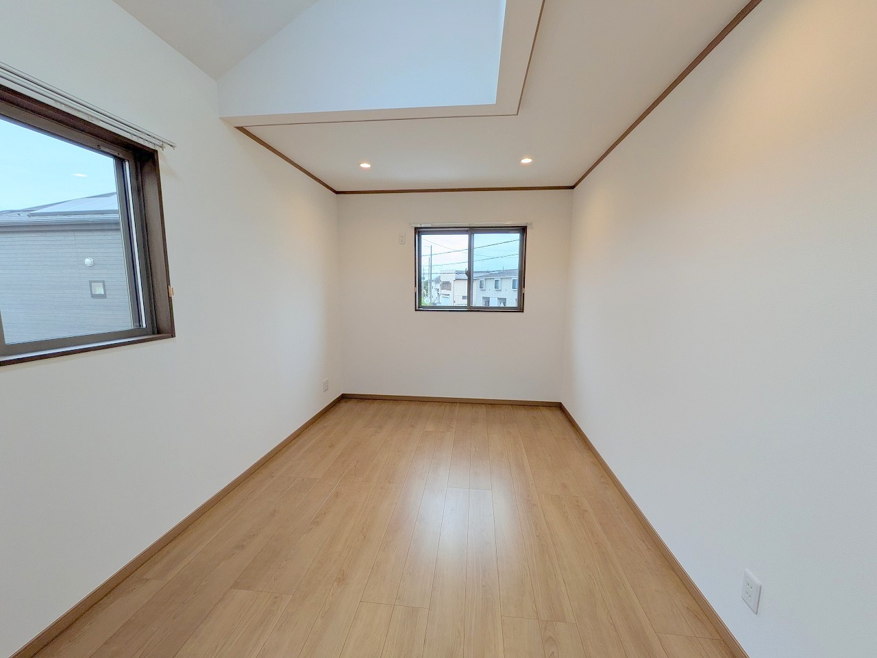 大きめのベッドを置いても、まだゆとりが持てる大きさ。8帖の主寝室。