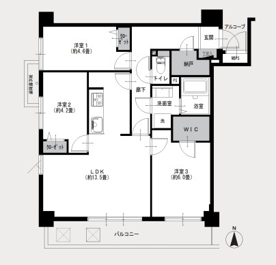 | 間取 | 3LDK (LDK13.5帖、洋室6帖、洋室4.3帖、洋室4.2帖) | ||
