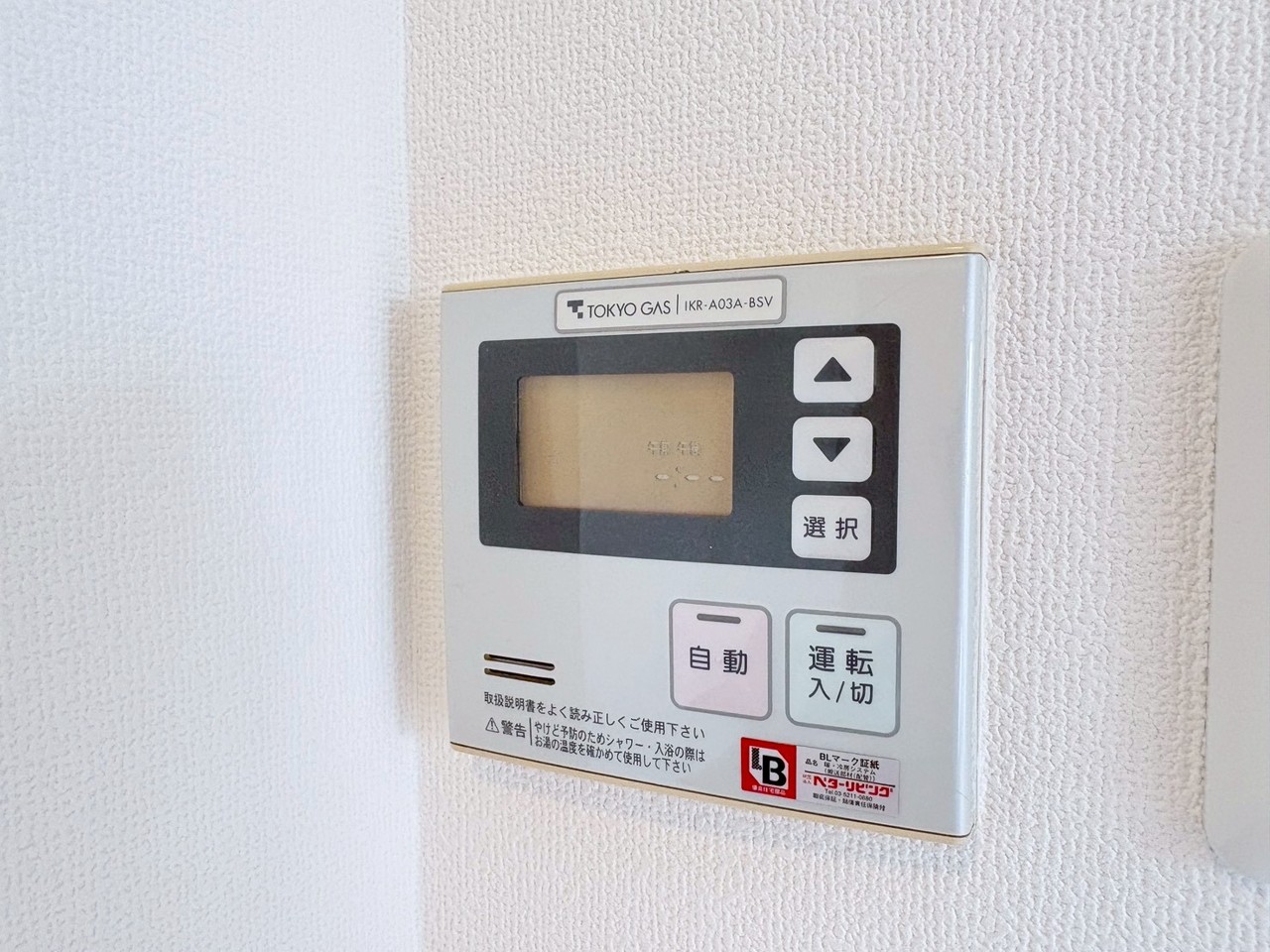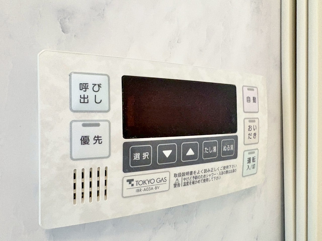 浴室側の給湯リモコン。