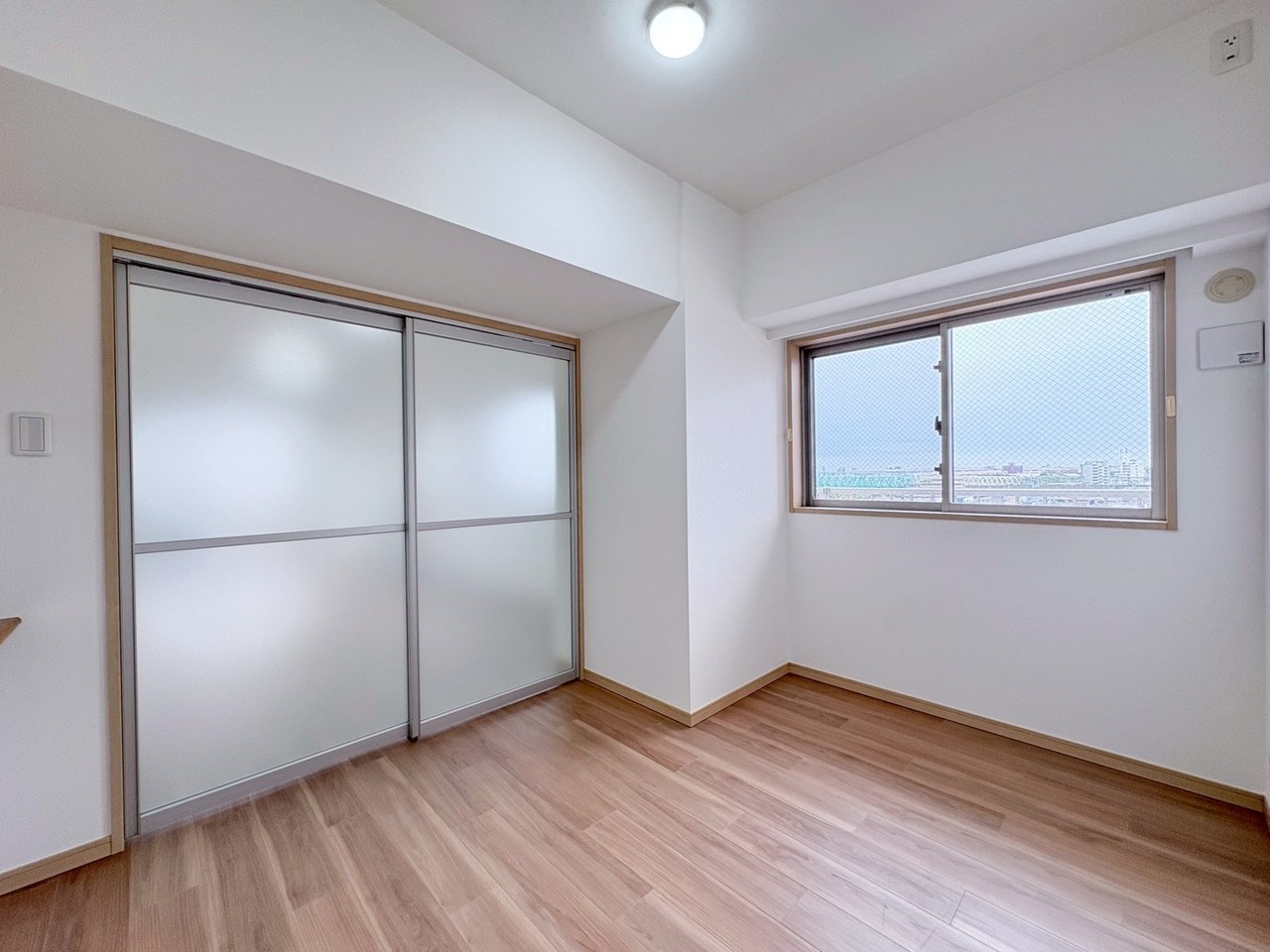 大きめのベッドを置いても、まだゆとりが持てる大きさ。8.1帖の主寝室。