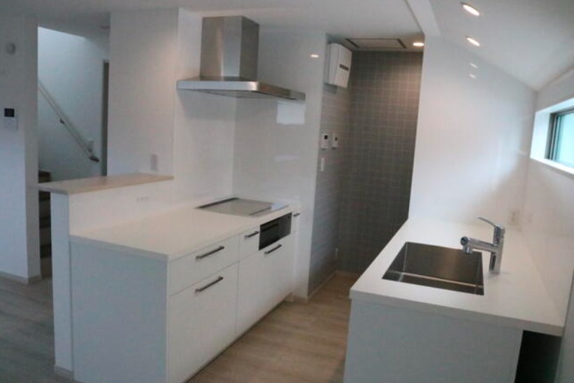 2021年築、屋上バルコニーのある築浅戸建。グラフテクト製2列型キッチン、BOSCH製食洗器、リビング、ダイニング、キッチンに床暖房、浴室換気乾燥機など設備も充実してます。