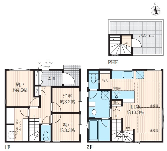 | 間取 | 1SLDK (洋室3.2帖、S4.6帖、S3.3帖、LDK13.3帖) | ||