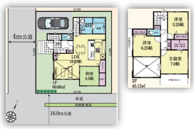 | 権利種類 | 所有権 | 接道 | 南側16M公道に10.79M接道 西側4M公道に11.6M接道 |