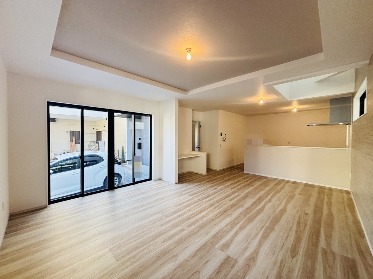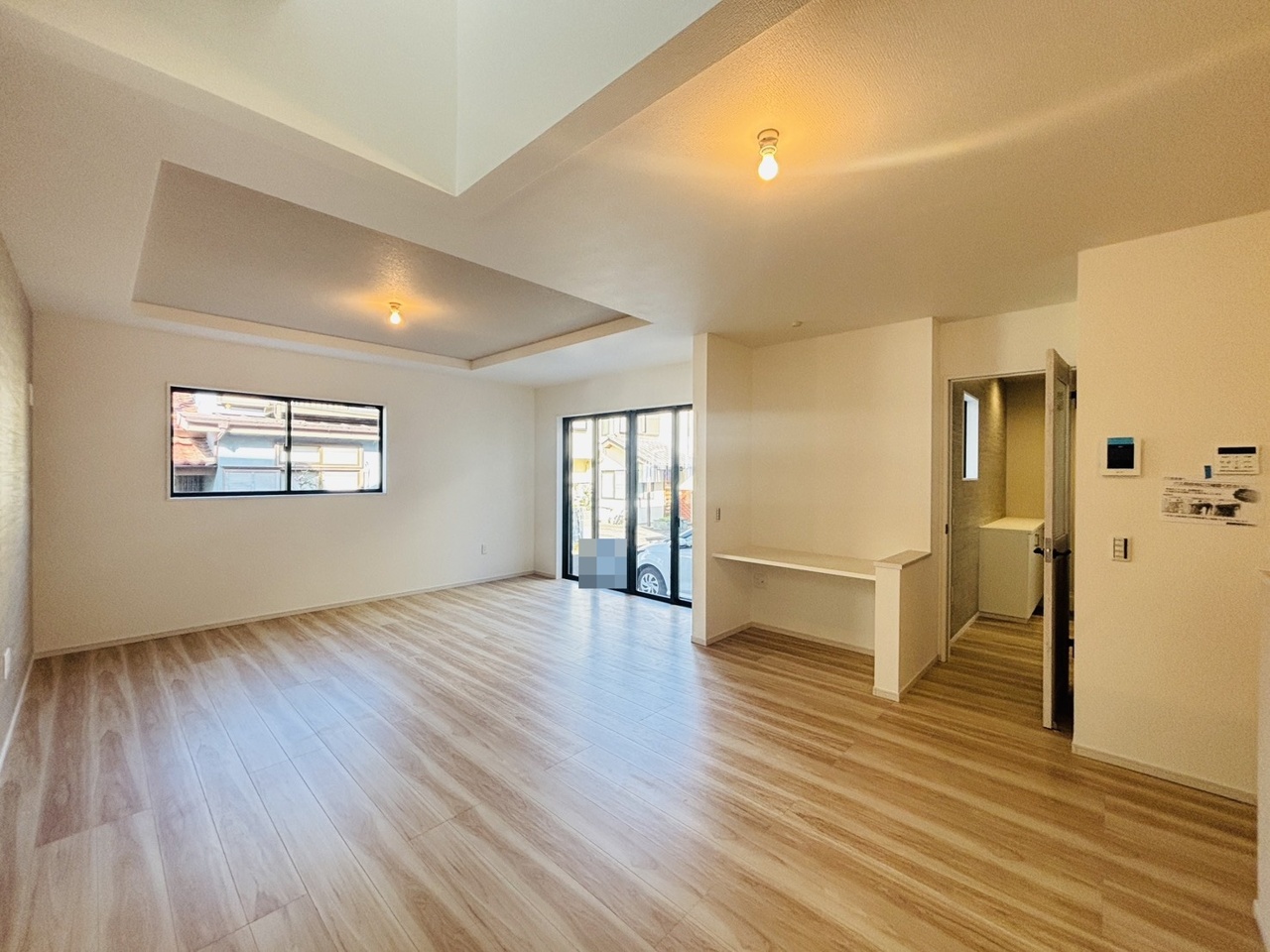 大きな開口部から明るい光が差し込む、日中の室内の明るさがこの部屋の魅力です。