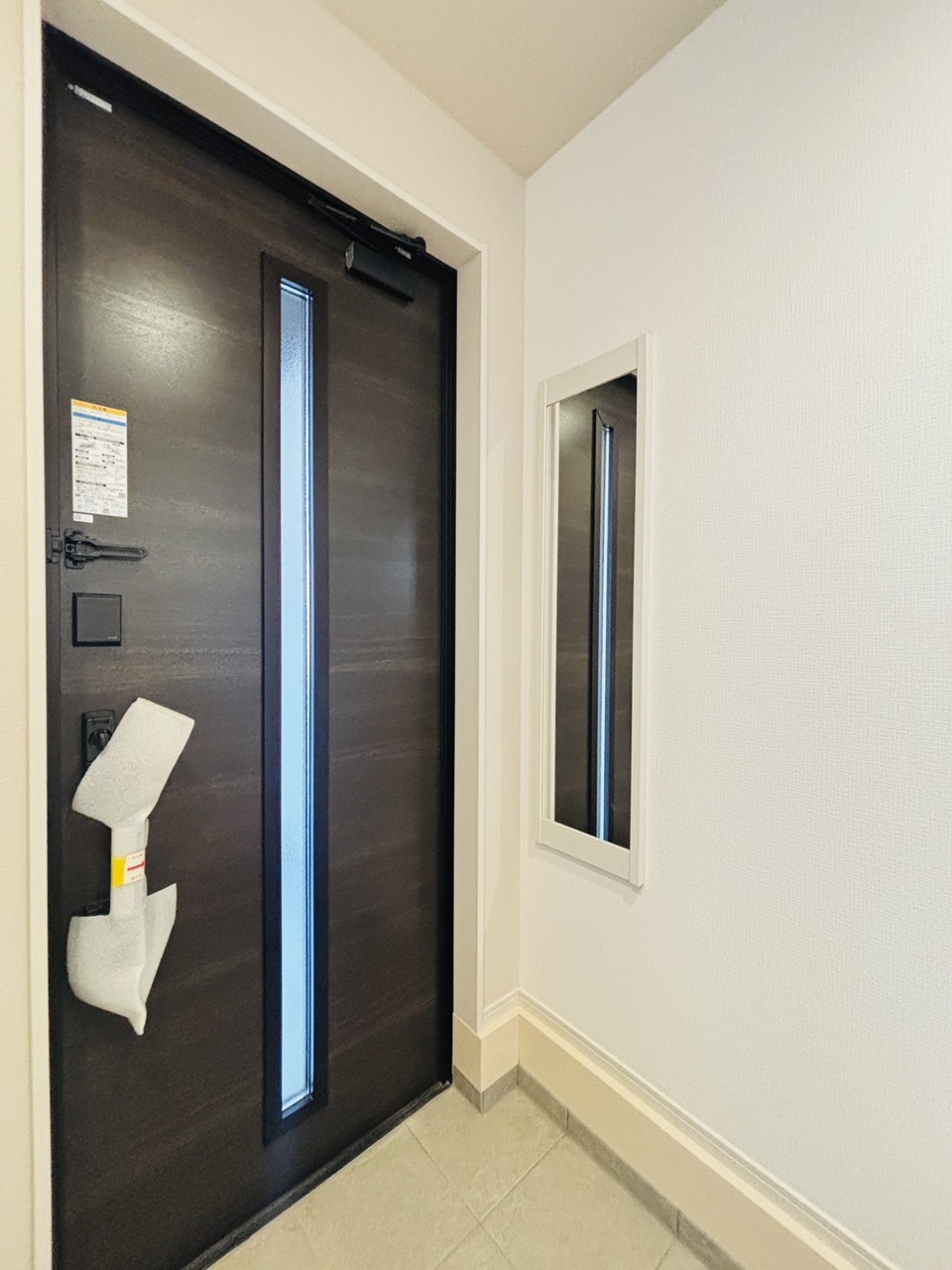 お宅の顔となる明るく開放的な玄関。ご家族皆様様の靴を収納できるスペースと全身鏡があり、お出掛け前に身だしなみチェックもできます。