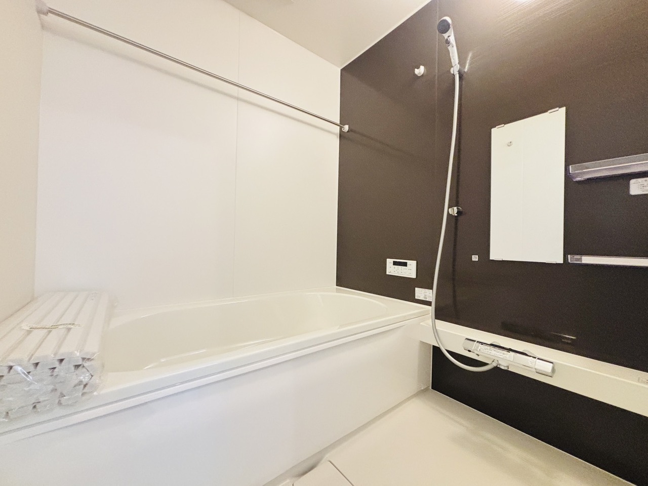 落ち着いた色味の浴室で1日の疲れをゆっくりと癒してください。