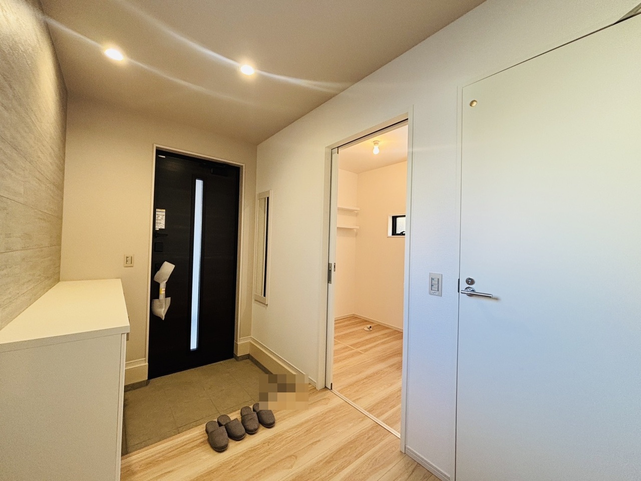 明るく開放的な玄関、靴の脱ぎ履きもしやすく、収納も豊富でご家族皆様の靴をスッキリ収納できます。
