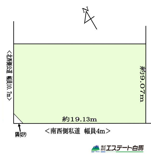 | 権利種類 | 所有権 | 接道 | 北西側10.7M公道に接道 南西側4M私道に接道 |