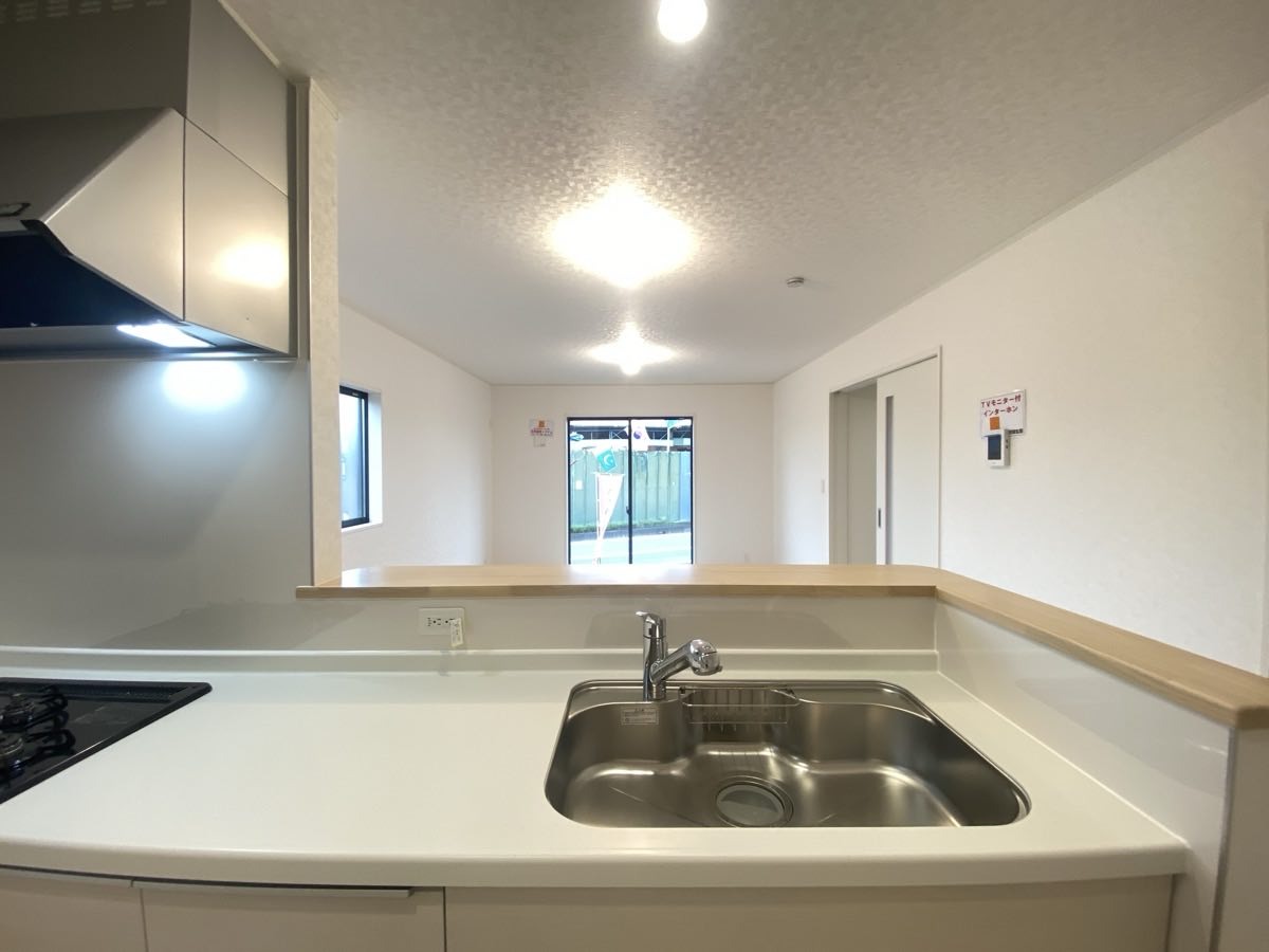 リビングで遊ぶお子様を見守りながらお料理ができる、対面キッチン。