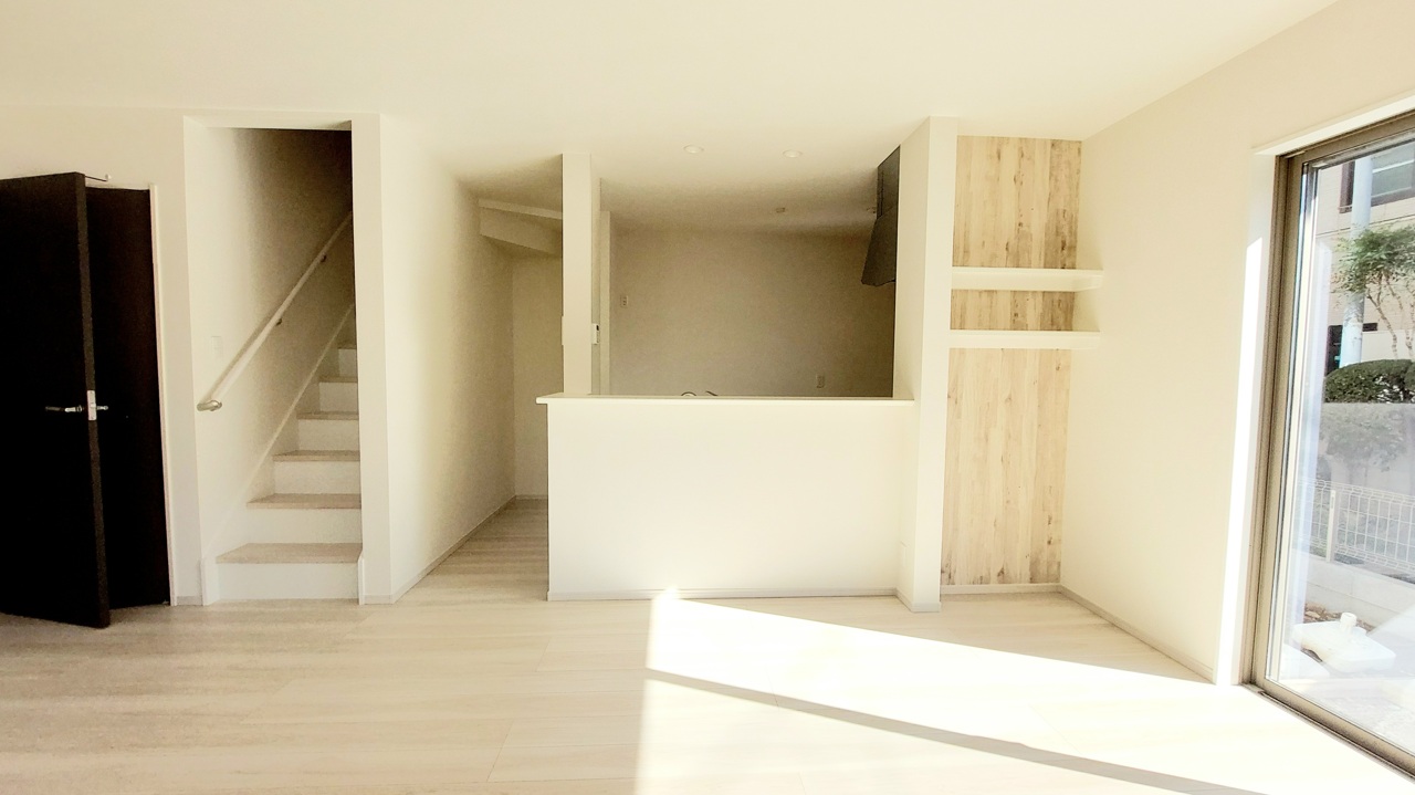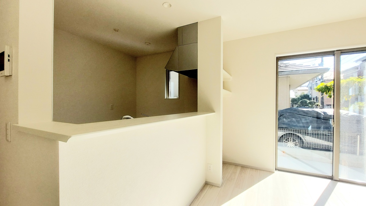 大きな開口部から明るい光が差し込むリビング。日中の室内の明るさがこの部屋の魅力です。